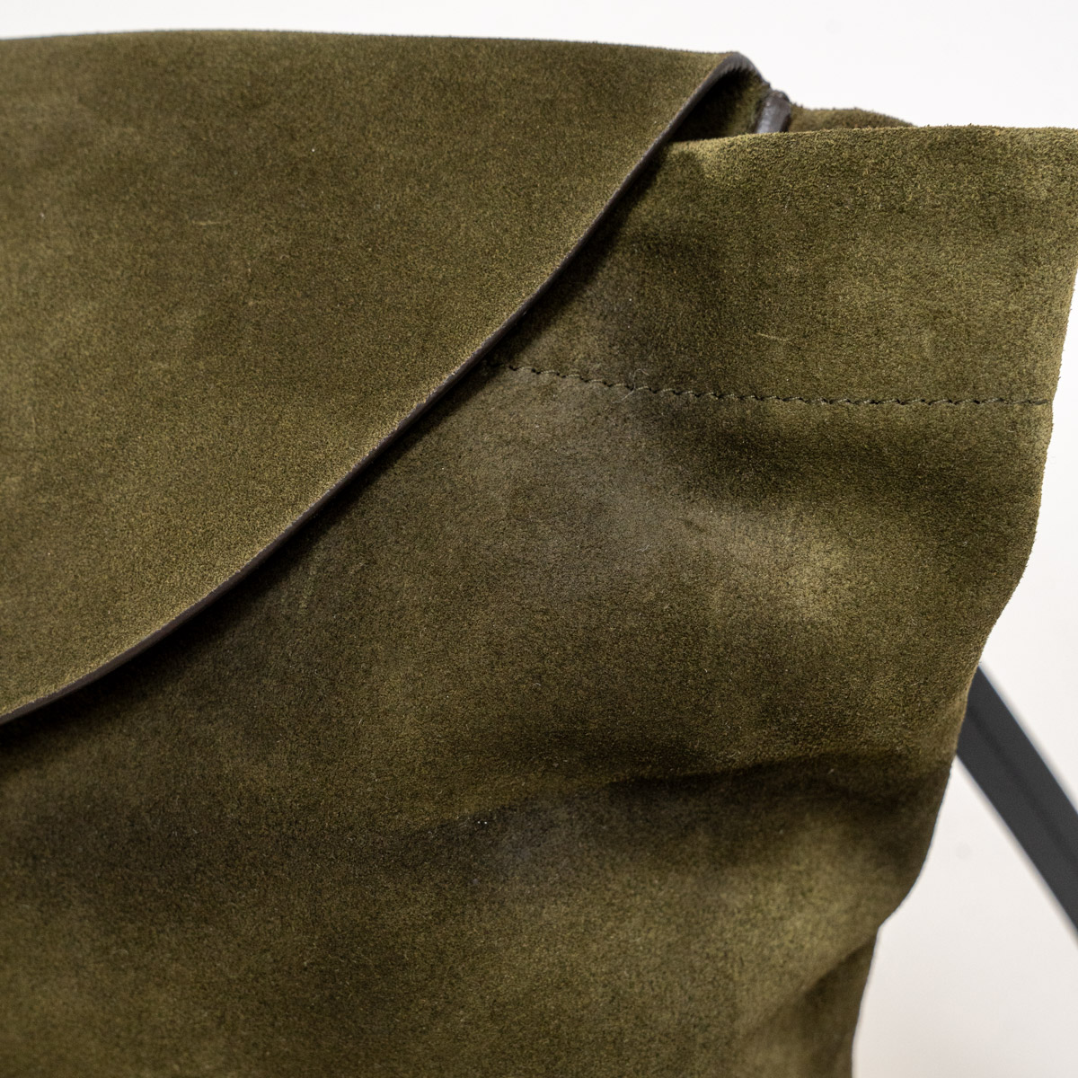 まず目に入るのは、やわらかいスエードで仕立てられた本体と、くったりとしたホーボーシルエット。