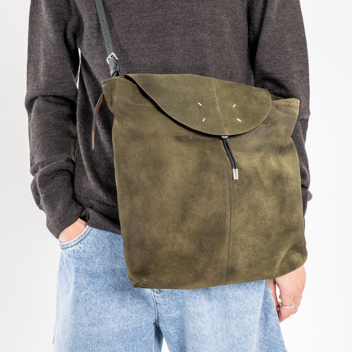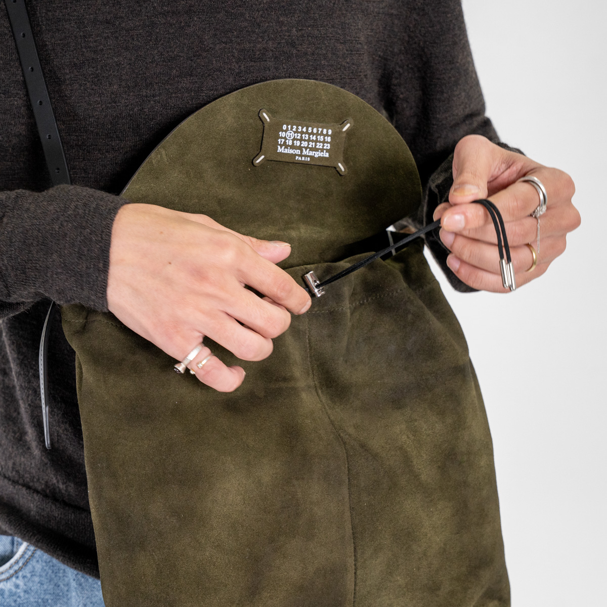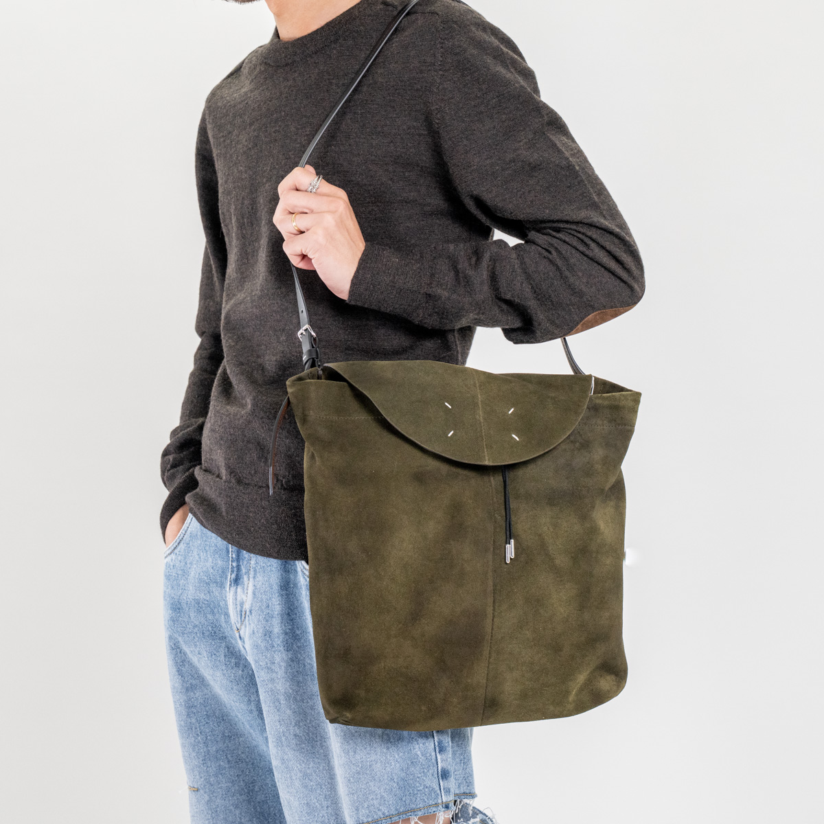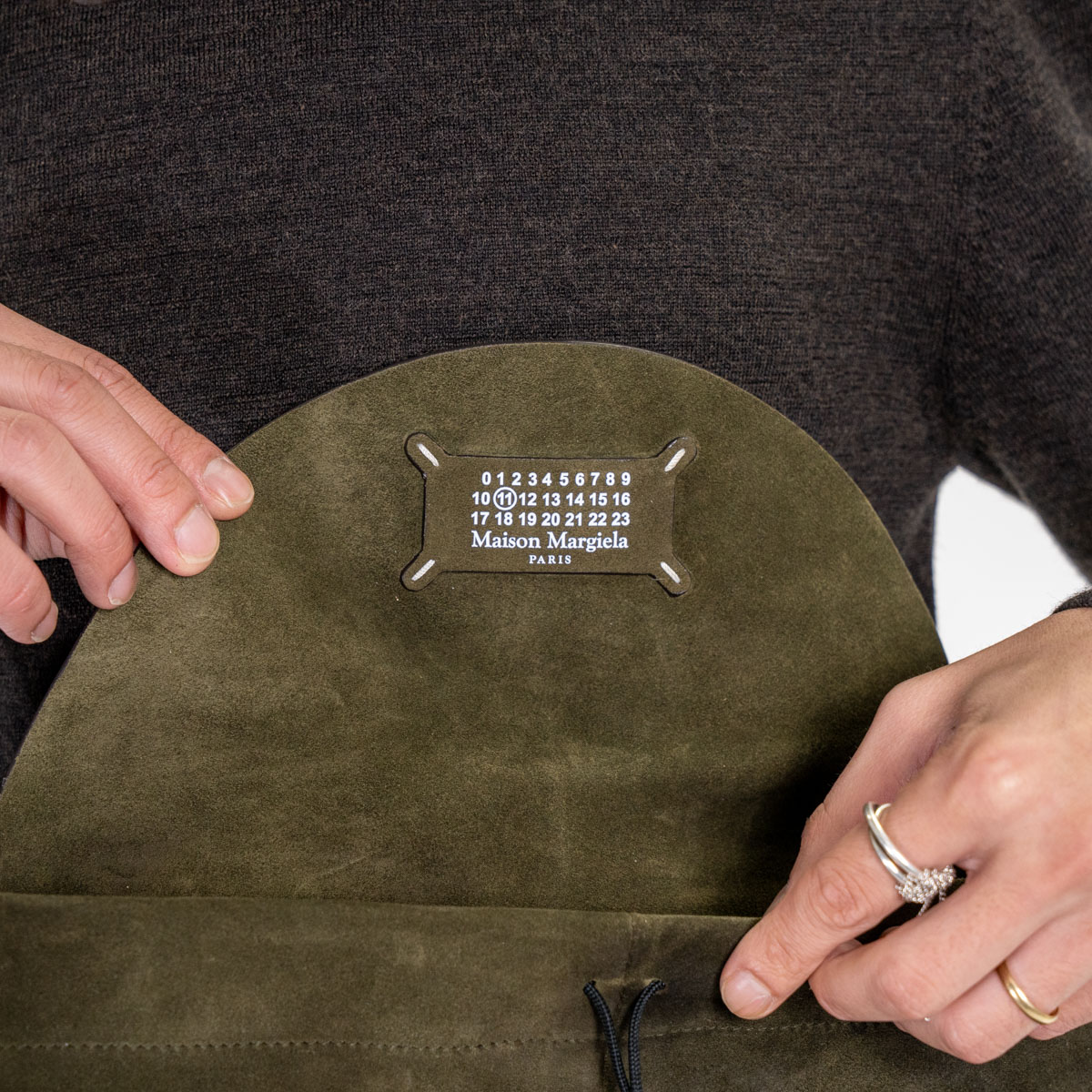 ブランドロゴをあえて見せず、4つの白いステッチだけでマルジェラらしく。