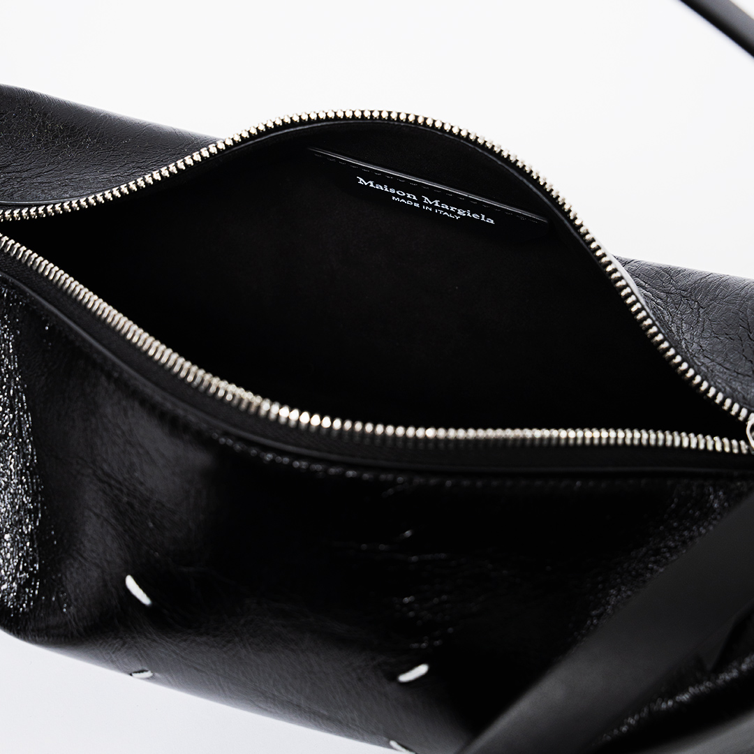 柔らかなレザーの表情と、 メタルジップのシャープさが並びながらも、 不思議ときれいにまとまっているところが、マルジェラらしさ。