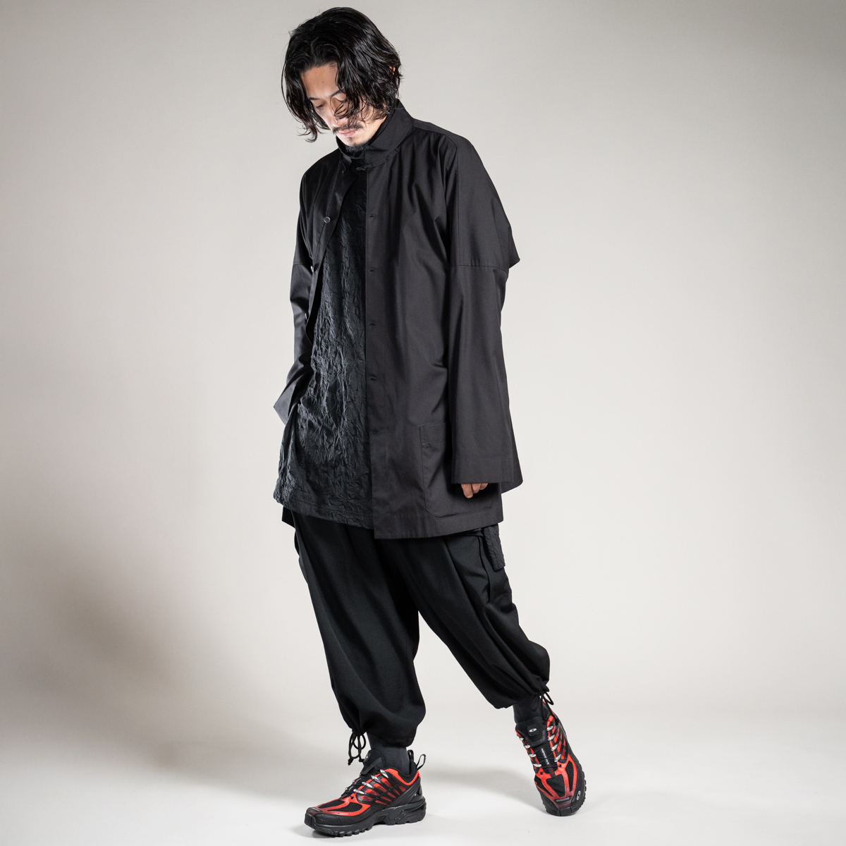 本来は、通気性を良くするための機能的なディテールですが、ファッションとして楽しめるのがサロモンアドヴァンスドらしい仕様です。