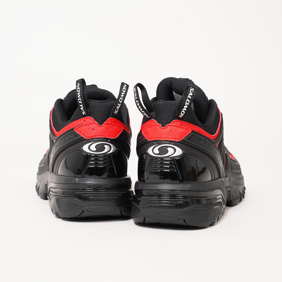サイドは黒をメインに、フロントは赤をメインにすることで見る角度によって印象が変わる一足。