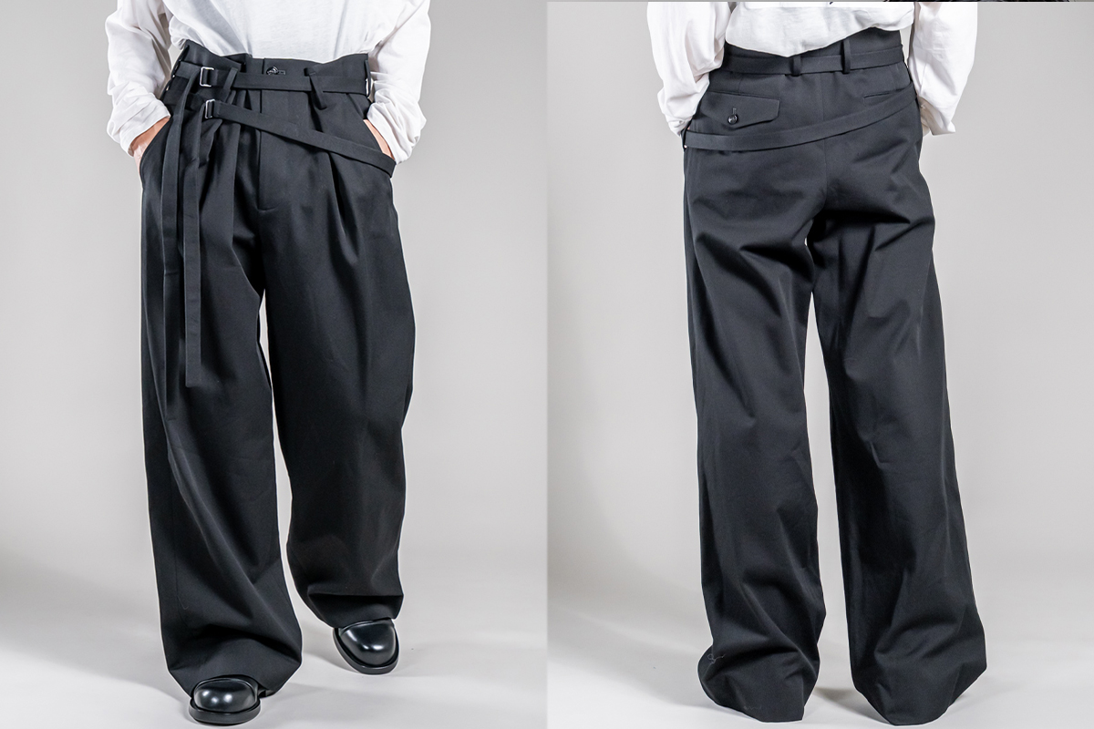ANNの定番でありながら、今季はより構築的なシルエットにアップデートされたワイドパンツ。