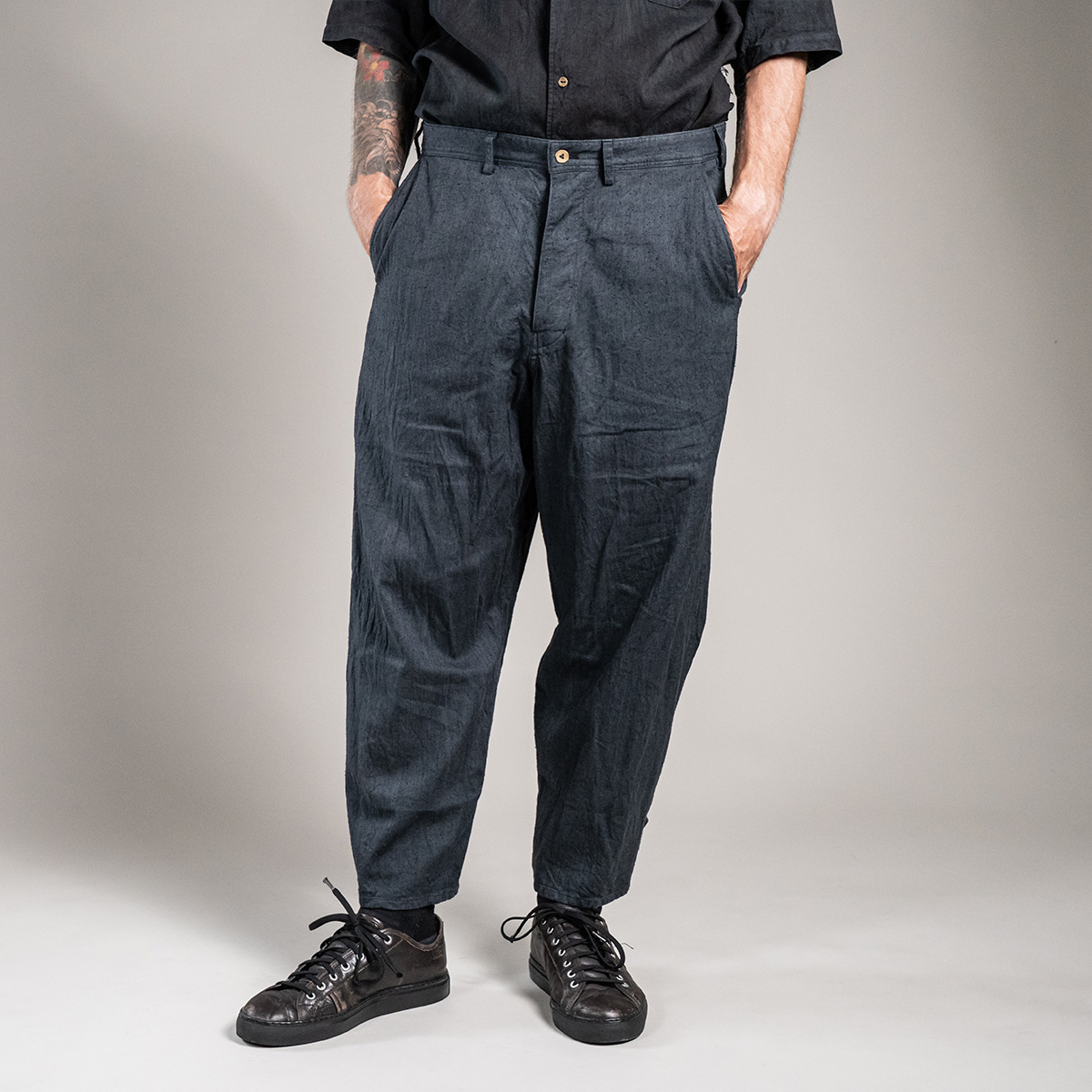 新品の状態でさえ雰囲気のある生地ですが、時間とともにそれが“自分だけの一本”へと変化していく過程こそ、このパンツの大きな魅力です。