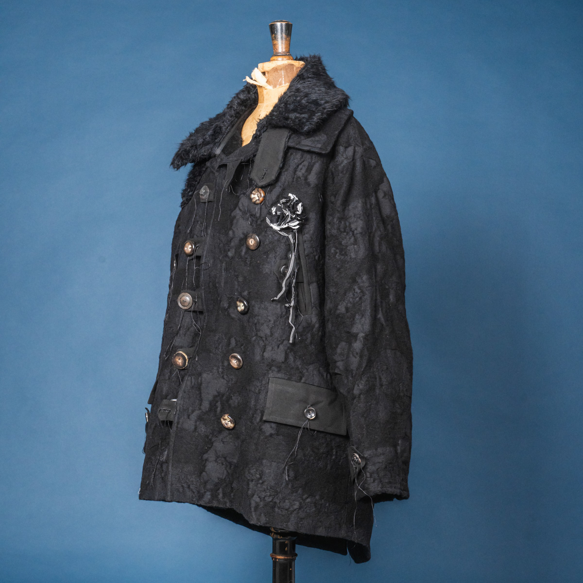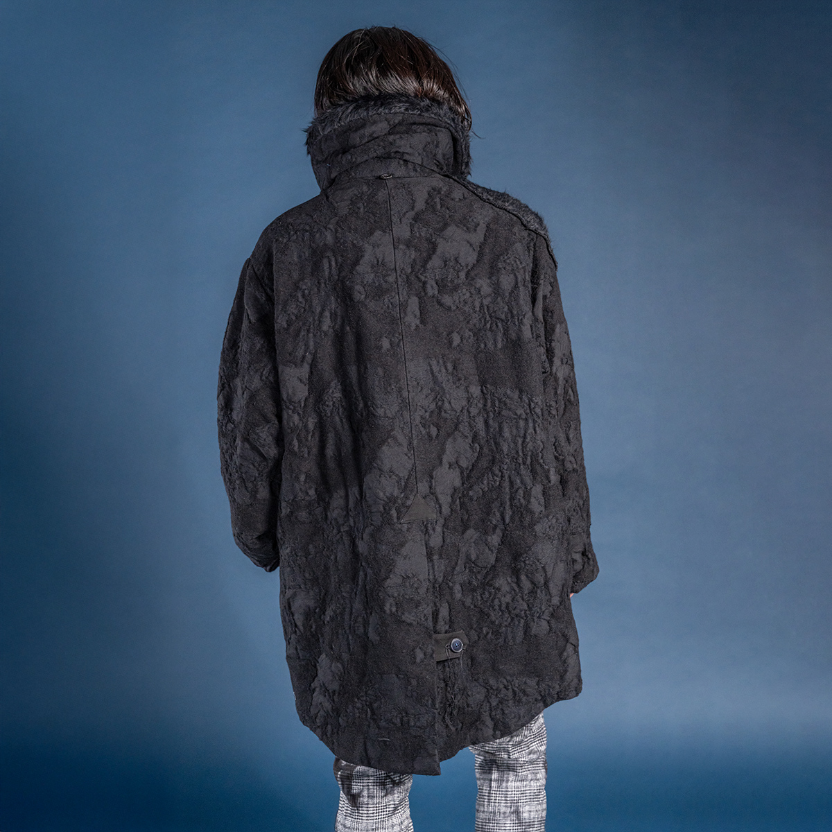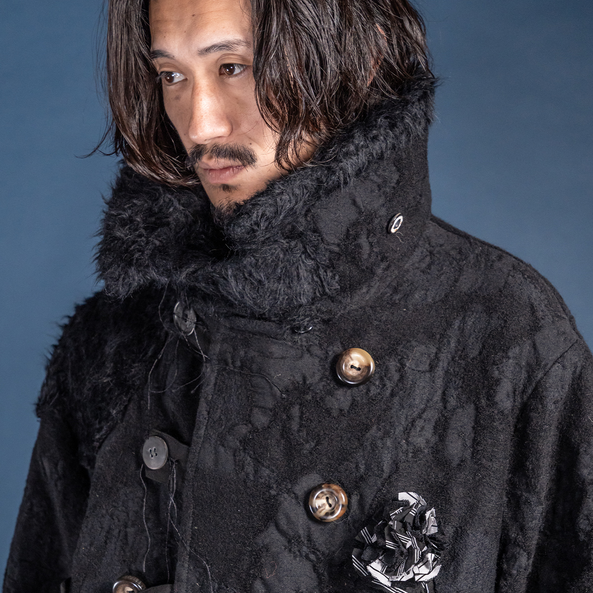 今季の象徴としてアルキビオ J.M.リボットが打ち出すPコート。