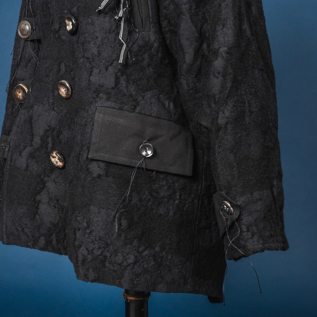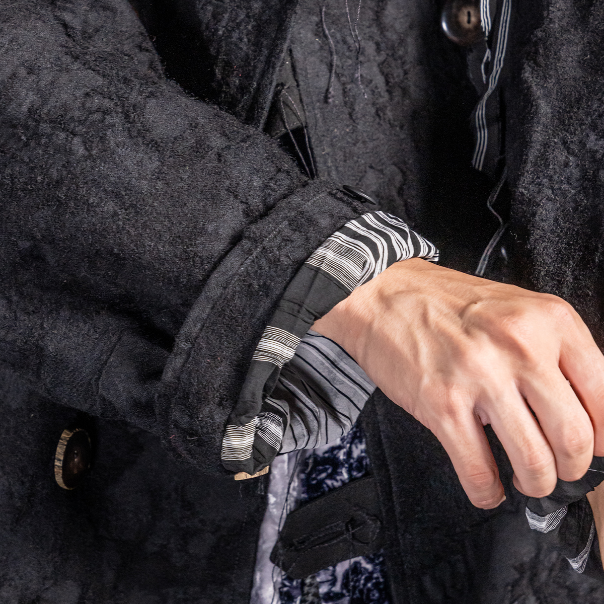 結果、Pコートにありがちな“硬さ”がほどよく解かれ、羽織った瞬間から身体になじむバランスに仕上がっています。