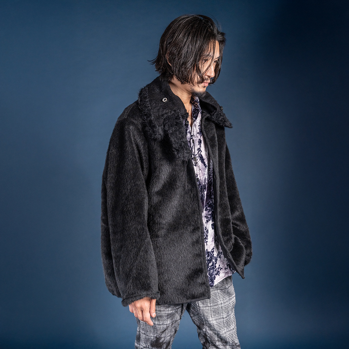 ①コート本体+ライニング(ファーON)で冬本番の重厚感