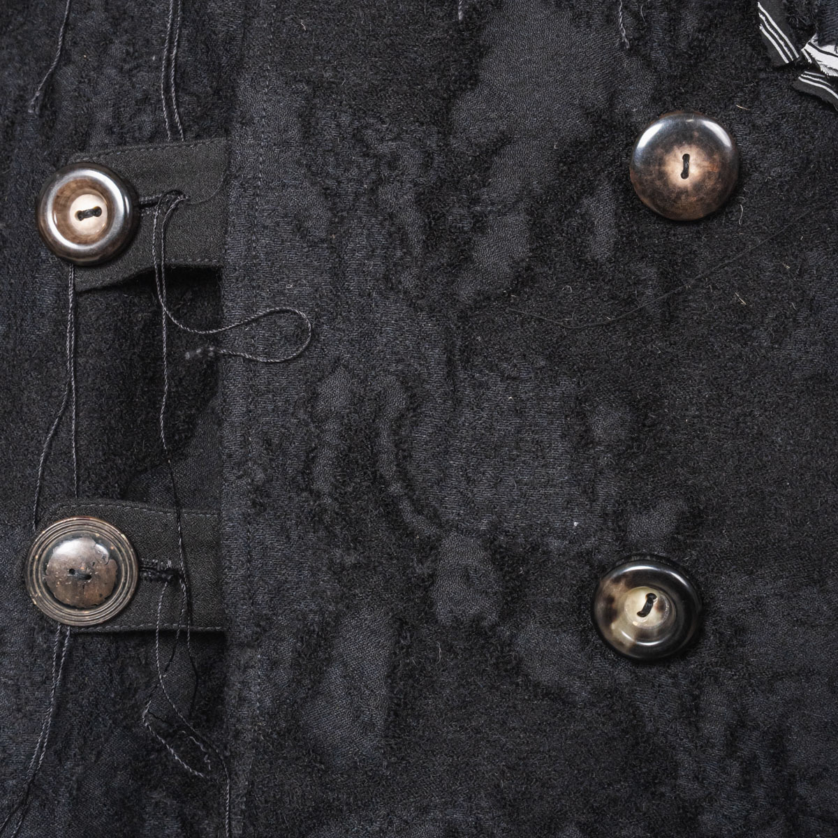 わずかな艶ムラを持つヴィンテージボタンは、ジャカードのマットな面と呼応して控えめな表情をつくっています。