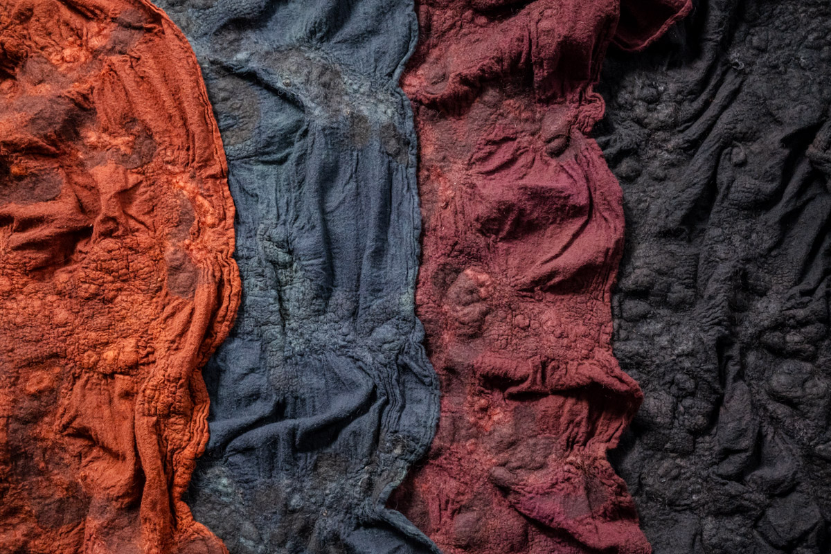 ワイルドシルク特有の張りと粗野感を残しつつ、指先は引っかからない——“荒ぶるのに滑らか”という矛盾を内包しています。