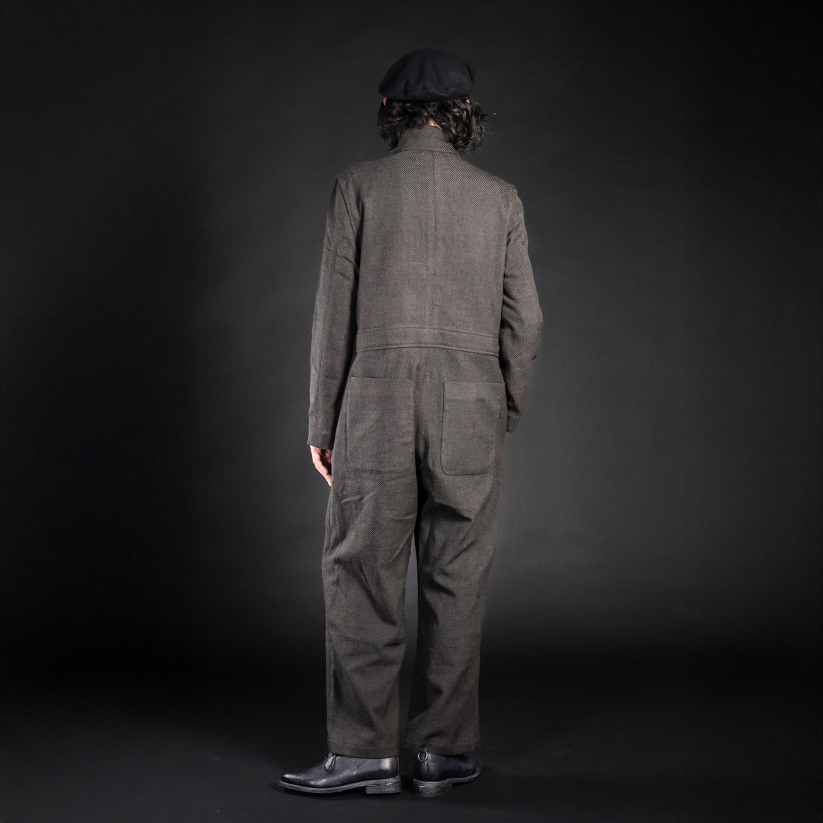 最後はBIEKならではの厚みと手応えのあるファブリックに、深みを生む染色を重ねたジャンプスーツです。