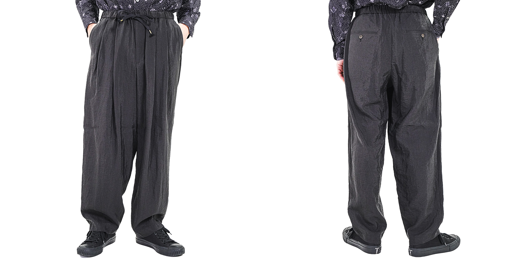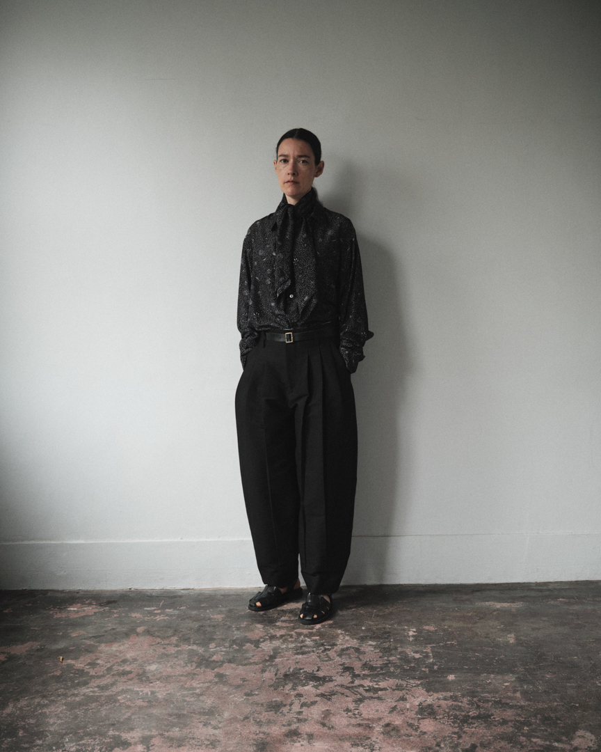 ダブルプリーツのイージーテーパードは、分量を持たせながらも収まりの良いシルエット。