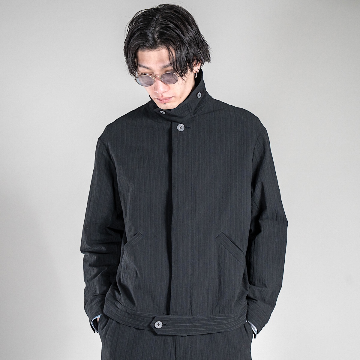 今季はチョークストライプ生地を使用し、 コットンにポリエステルをブレンドしたハリのある素材がベース。