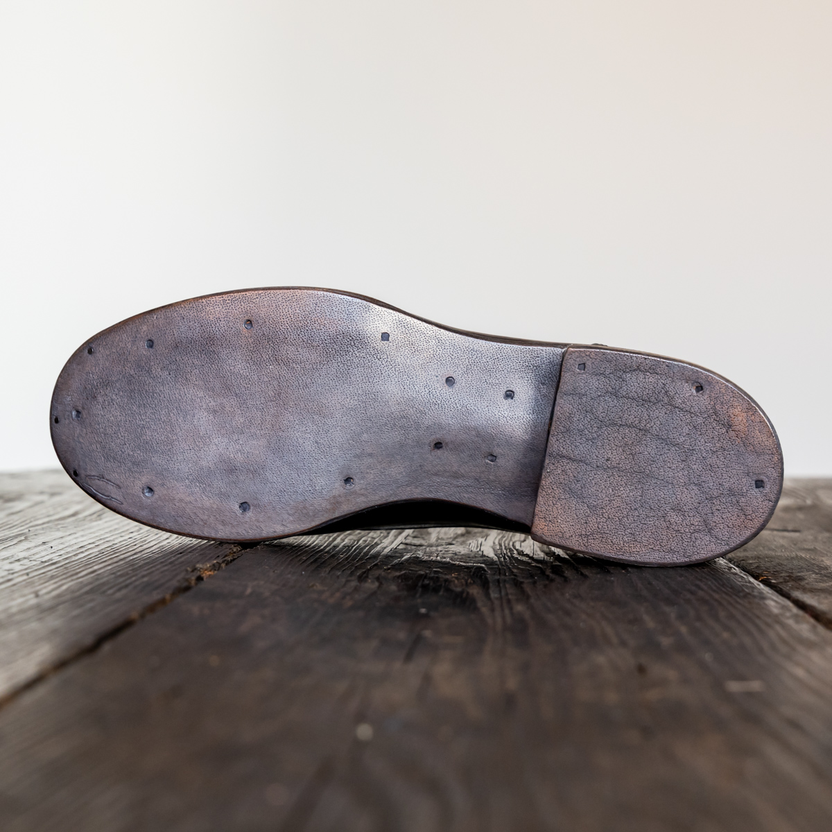歩くたびに皺や擦れが陰影を描き、自分だけの靴へと育っていく一足です。
