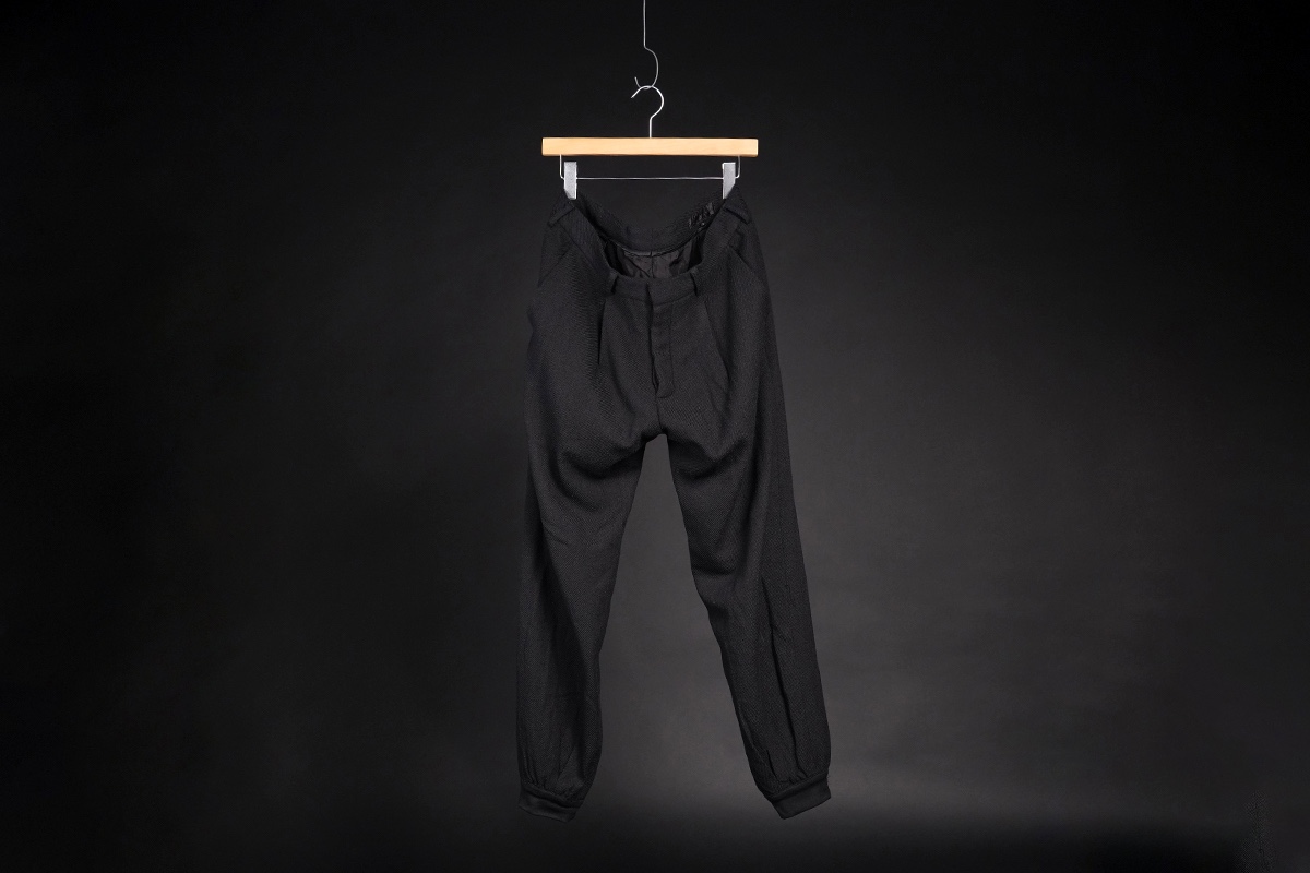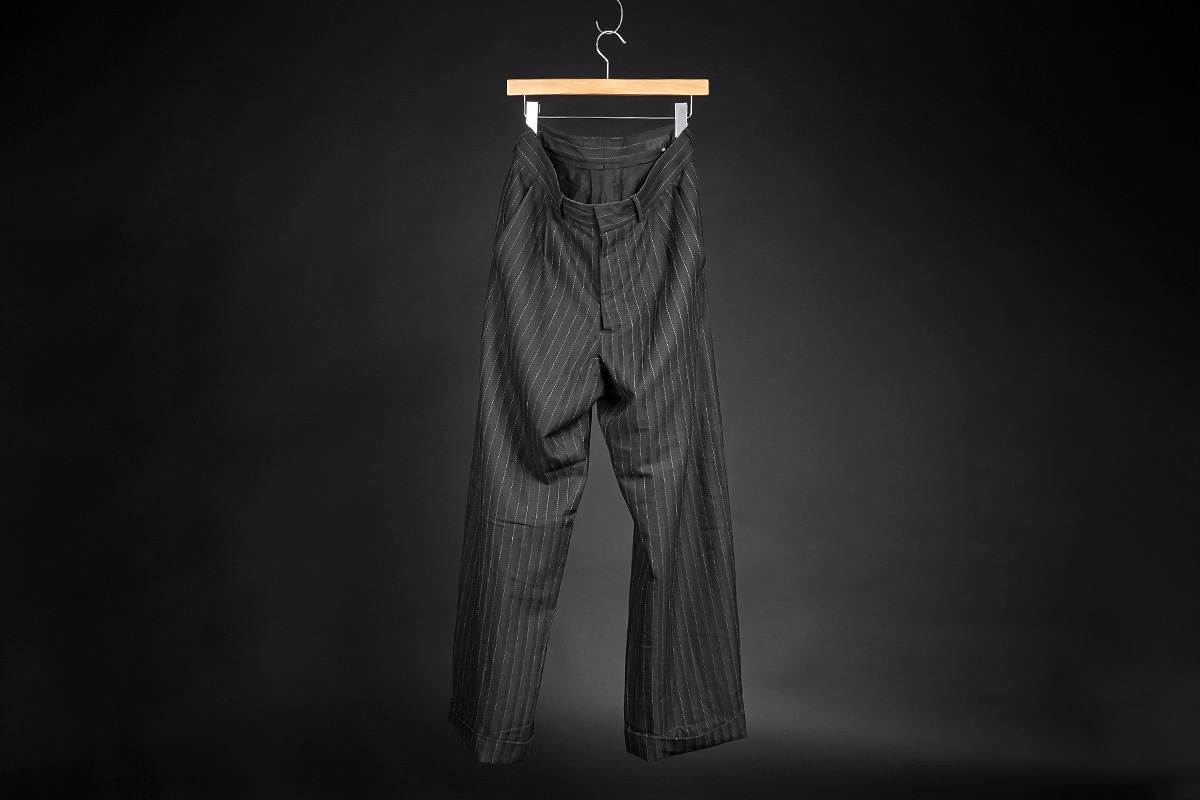 ITEM: 1920's tailored sporting single-pleated front curved bottom leg back-button closure pocket trouser