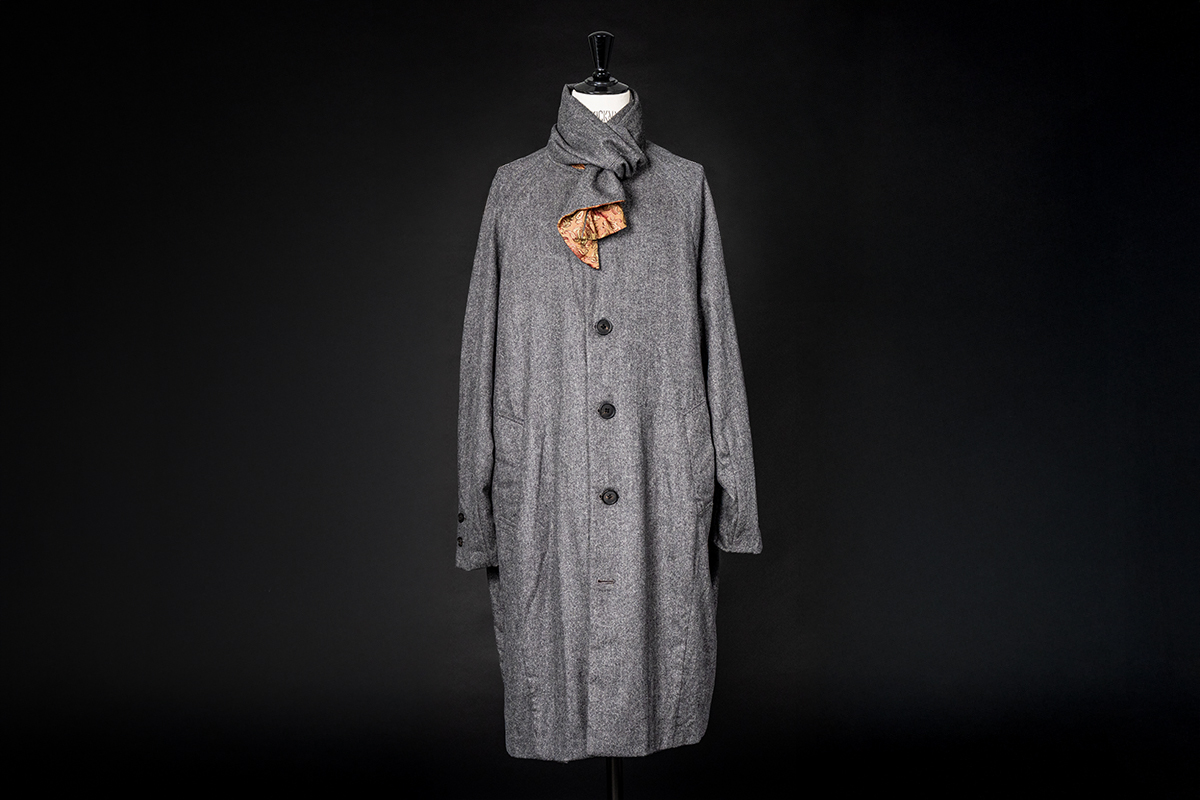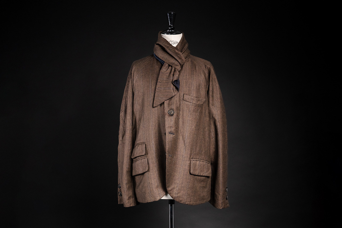 ITEM:advanced design superjacket with new exaggerated large volume silhouette, tailored four pocket 3-button single-breasted notch-lapel with scarf