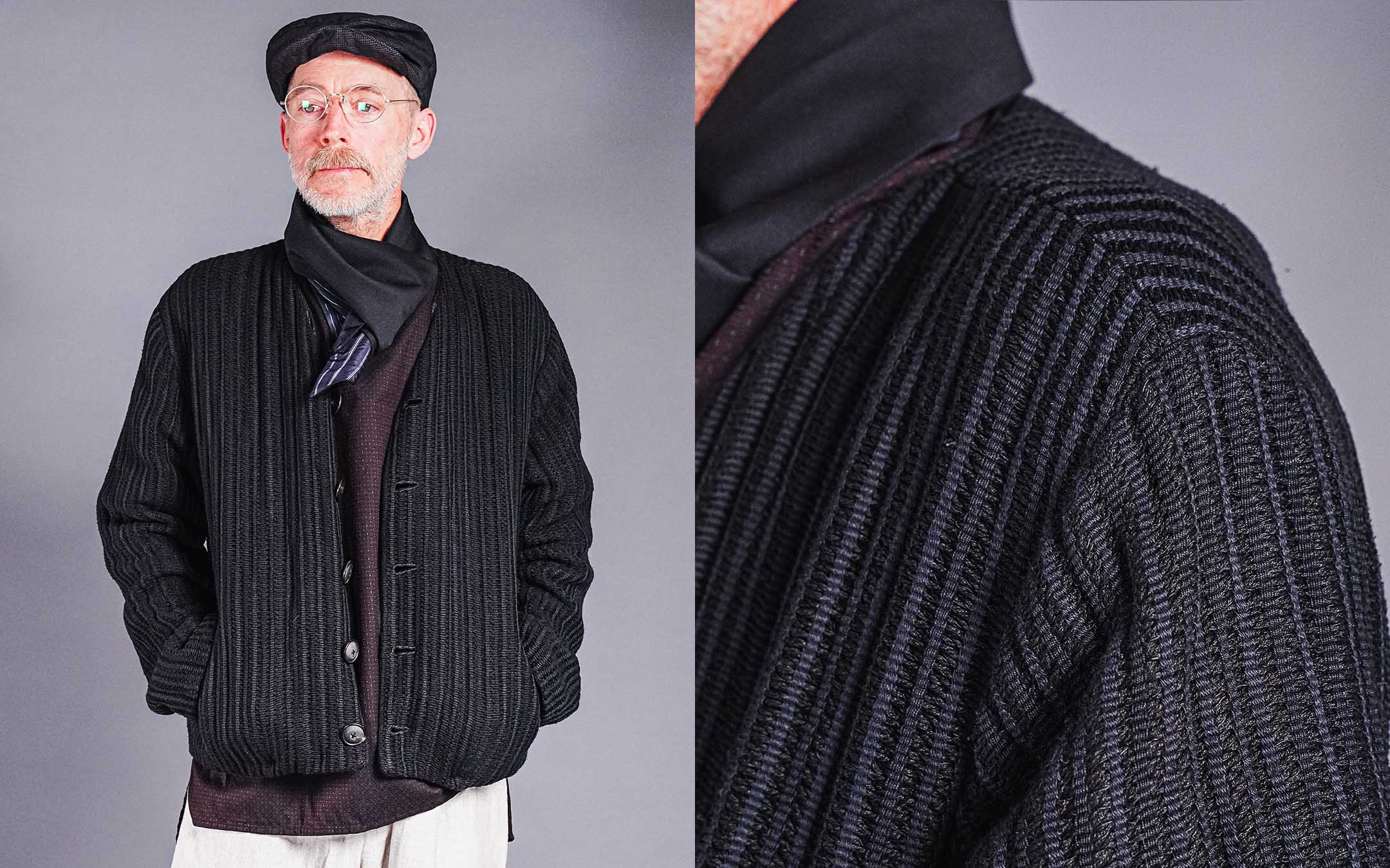 “コロンビーナ”を、ジャケットとカーディガンの中間に位置づけた一着です。
