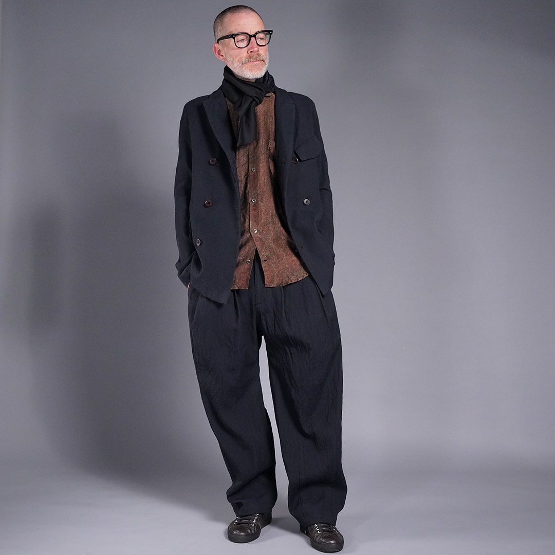 季節を問わず着用できる絶妙なバランスを持つ素材は、日常に自然と馴染みながらも、確かな存在感を放ちます。