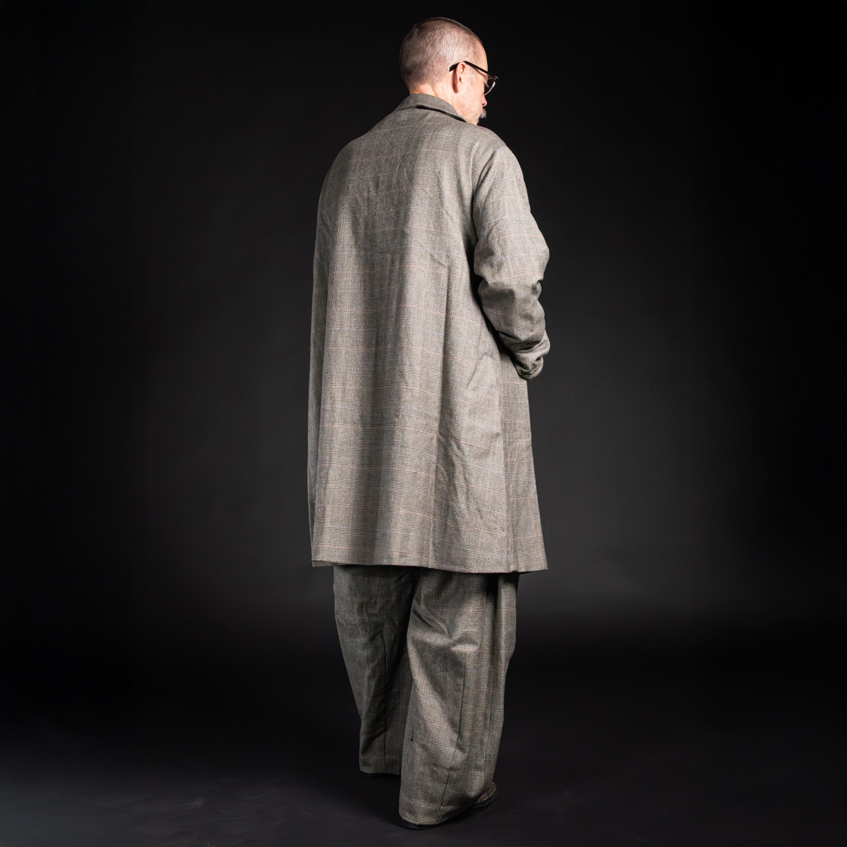 歩いたときや、ふとした所作のなかで、自然と生地が揺れる様子に、Geoffreyらしい“構築と流動”の美しさを感じていただけるはずです。