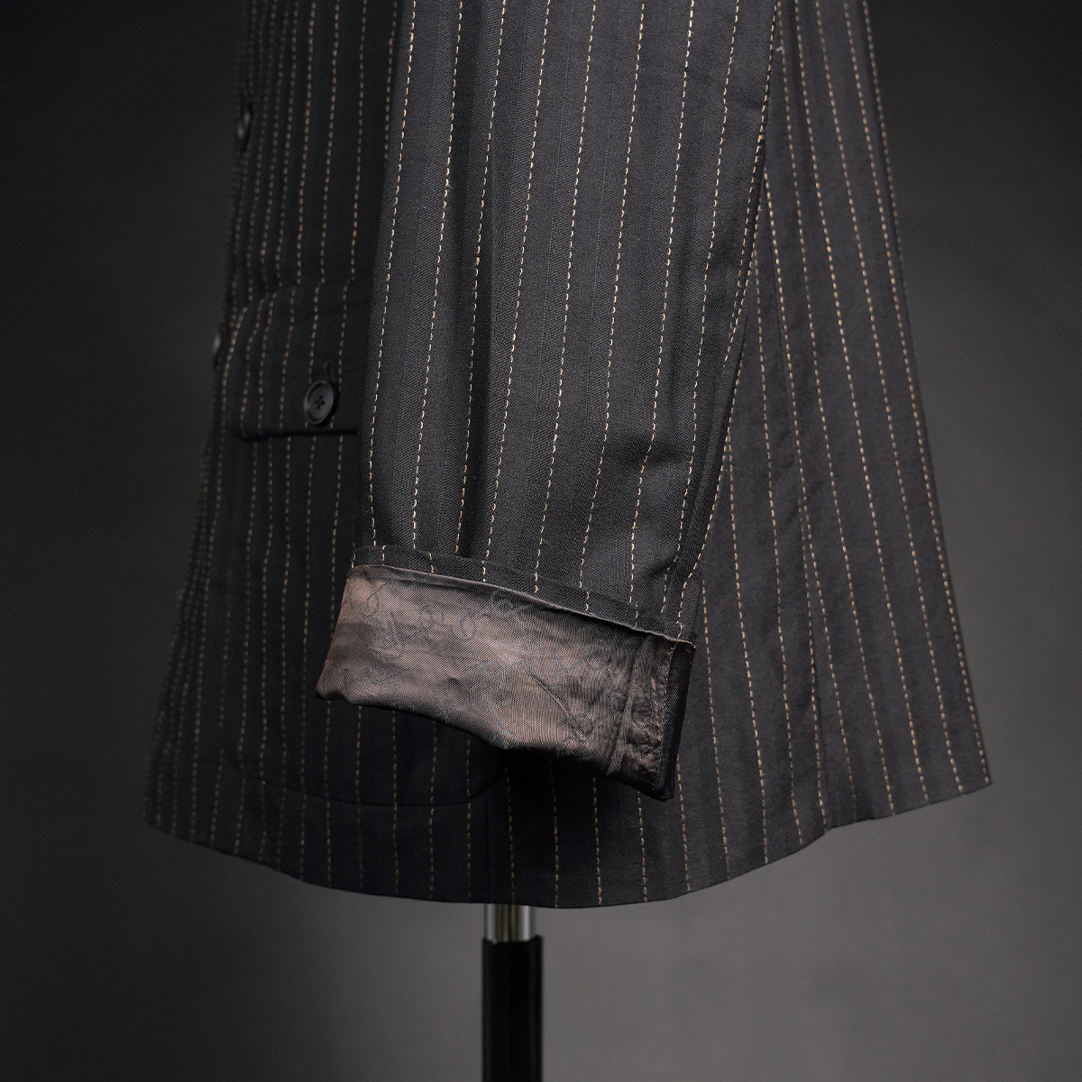 生地は、Luigi Parisotto(ルイジ・パリソット)社 によるシルク×ウールのジャンプ織りピンストライプ。