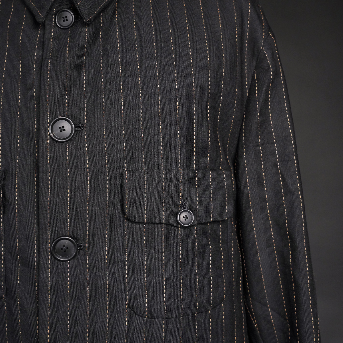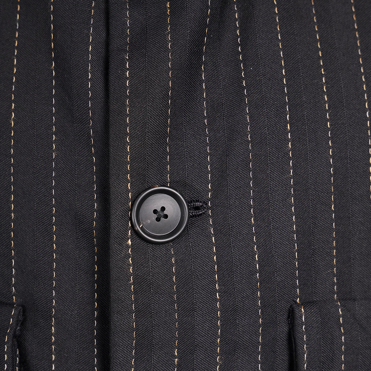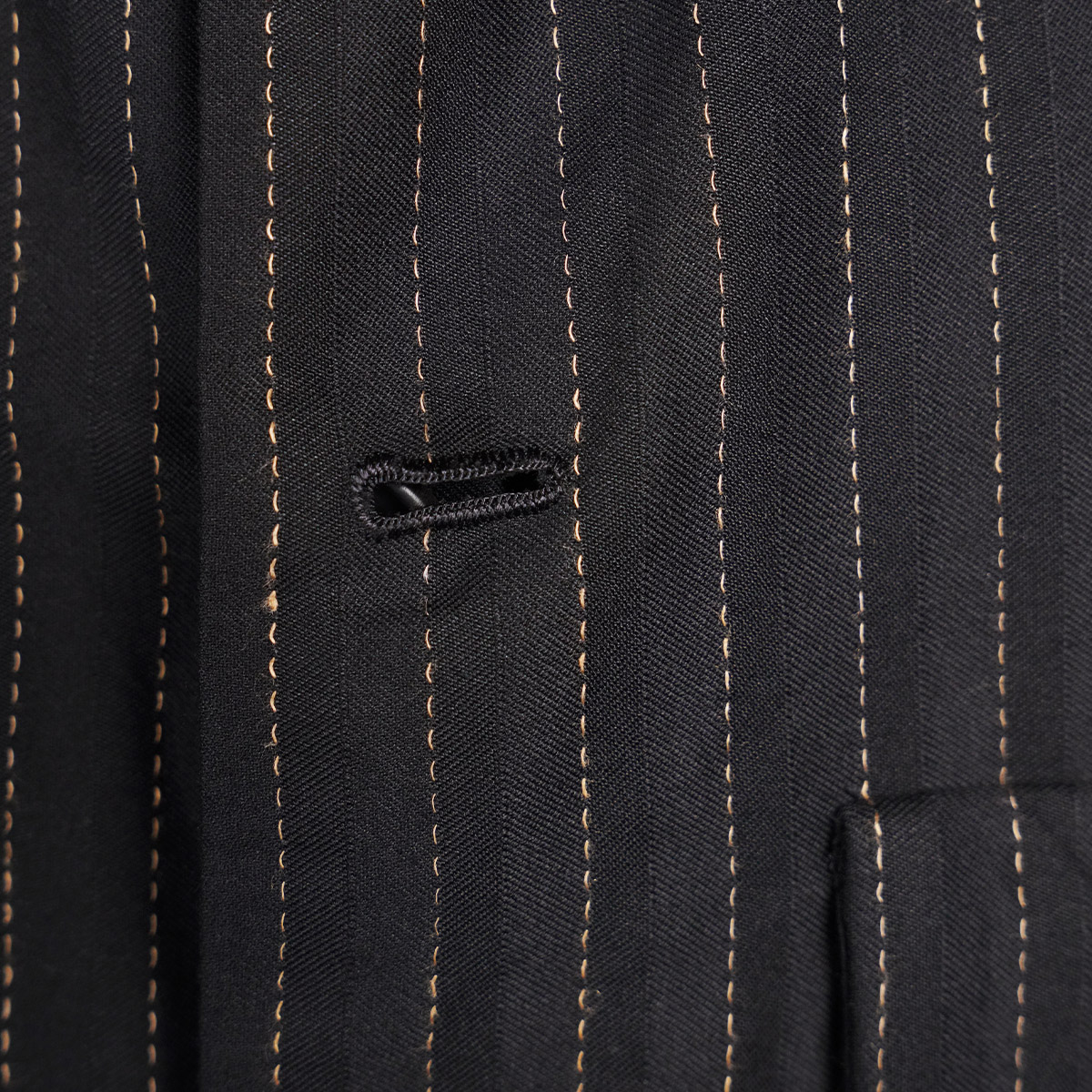 Fontana 社のリアルホーンボタンや、ミラノの職人が一つ一つシルク糸でかがったボタンホール(10個以上)は、まさに芸術的。