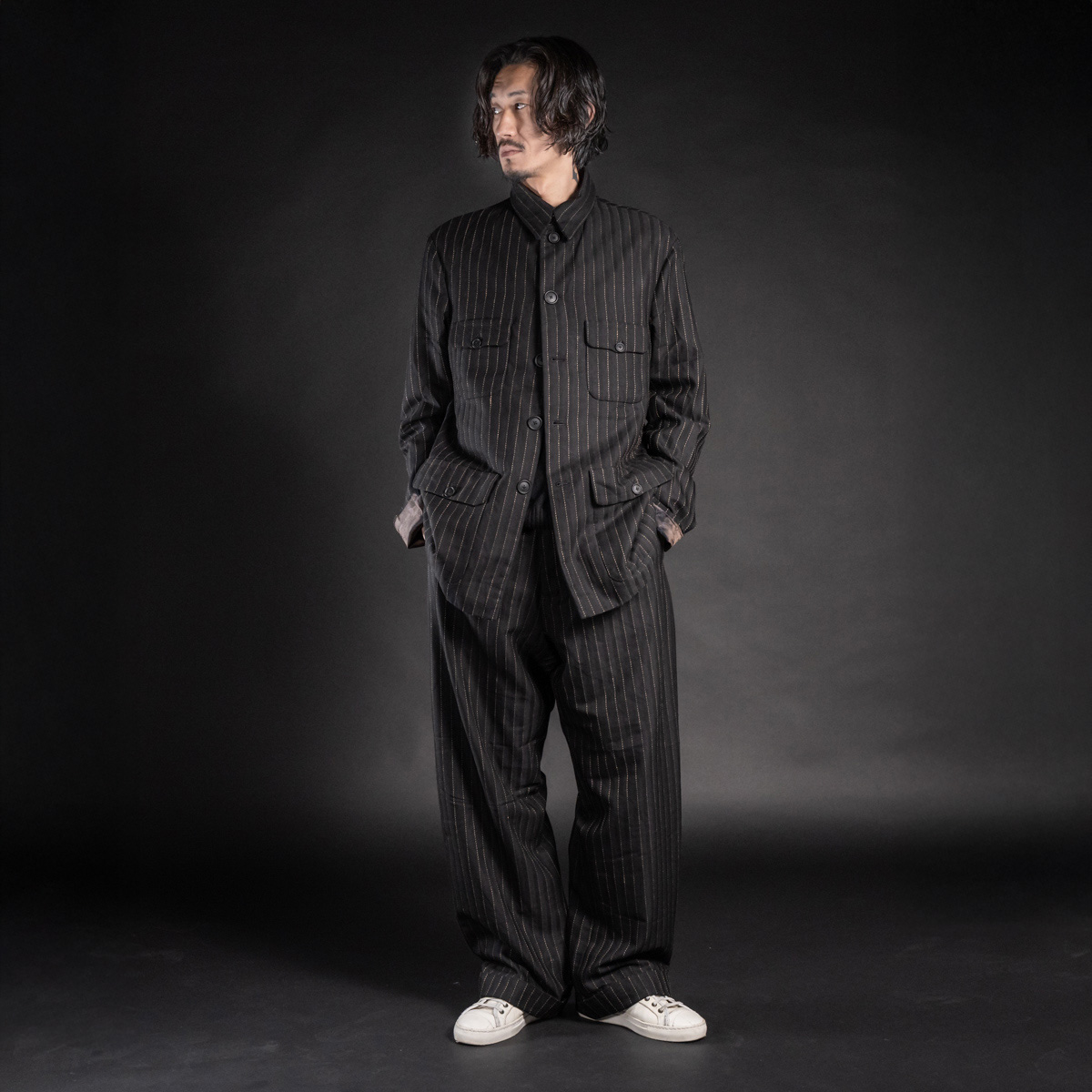 中世ヨーロッパのワークウェアやアジアの民族衣装を思わせるディテールが散りばめられ、時間を超えた雰囲気を纏っています。