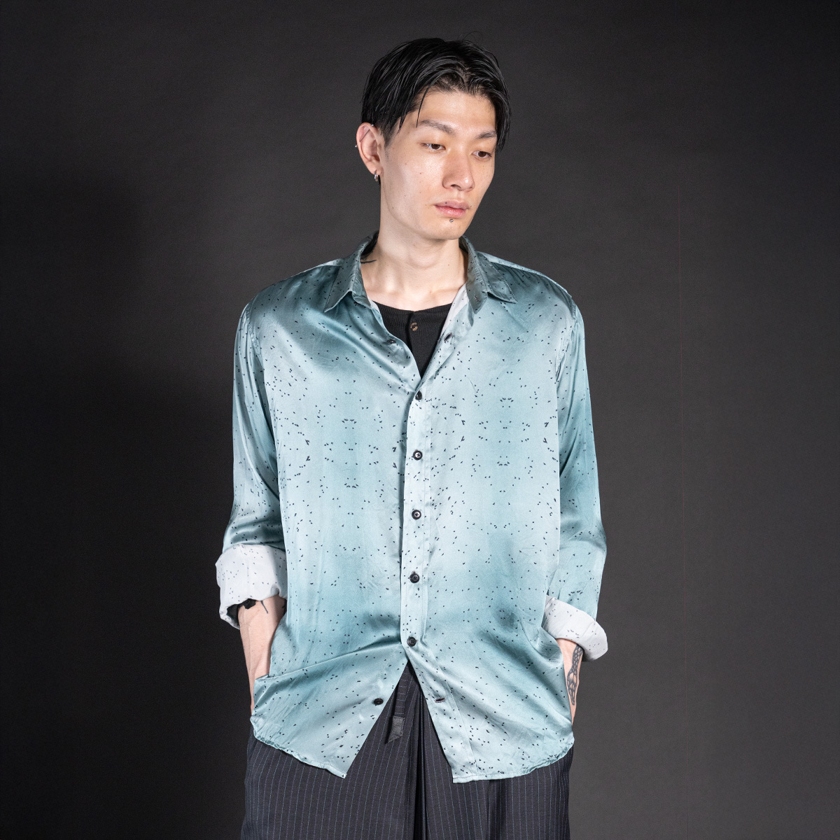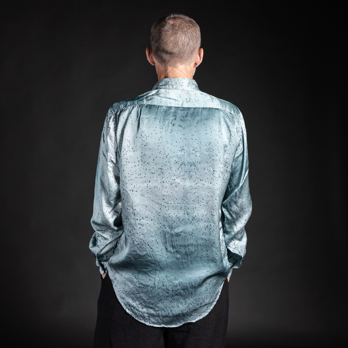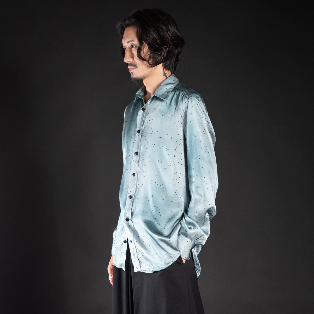 つまり、このシャツは生地・付属・ラベルまで、ほぼすべてがシルクで構成された贅沢な一着です。