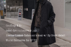 本日もジェフリー B.スモールの新入荷アイテムをご紹介します。 今回ご紹介するのはジェフリー B. スモールのコートです。 初めてジェフリー B.スモールのコートを試着すると、コートを着るという感覚を一変させてくれます。 … 続きを読む ジェフリー B.スモール カシミアワンサイズコート