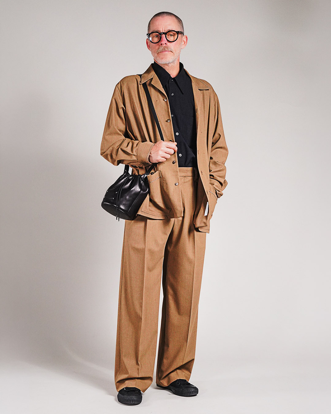 IRENISAが得意とする、 「ニュートラルな要素の重なりによる強さ」 を感じさせる一着です。