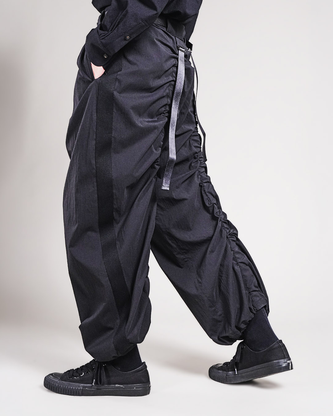 さらに裾のドローコードによって、ワイドからテーパードへと変化させることが可能です。