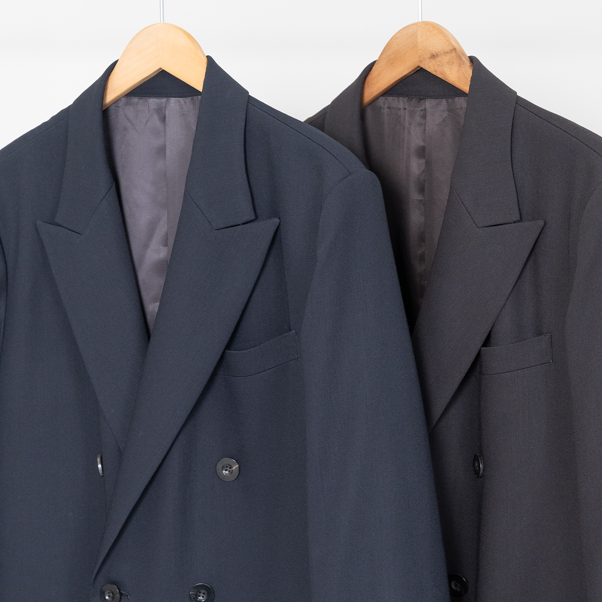 朱子織のウール素材を使った、ダブルブレステッドのコートです。