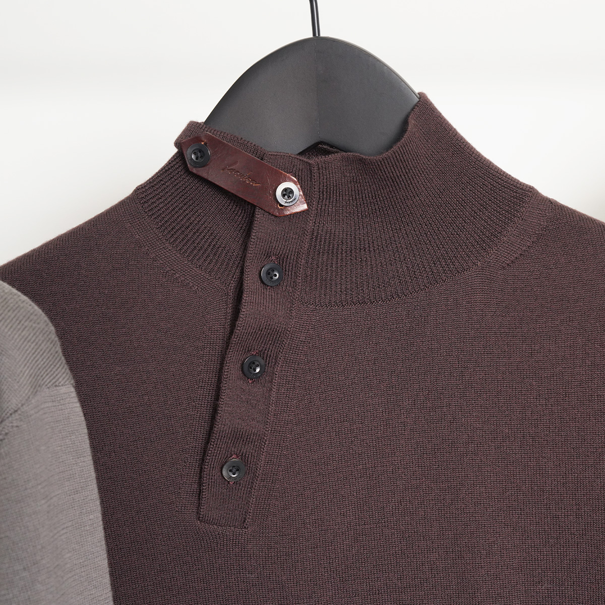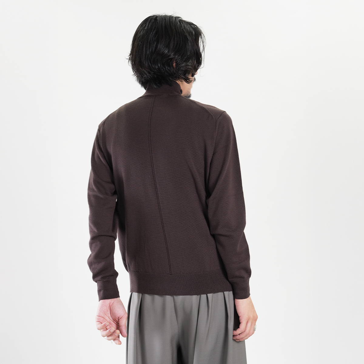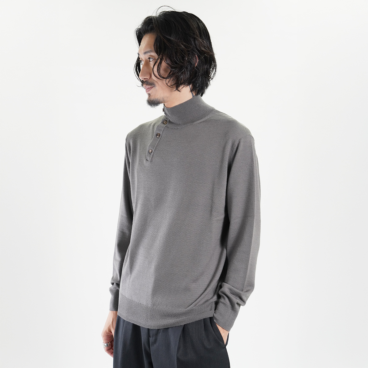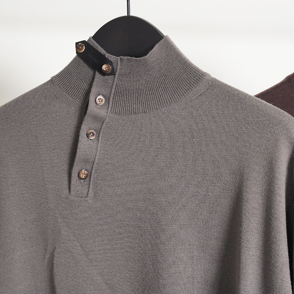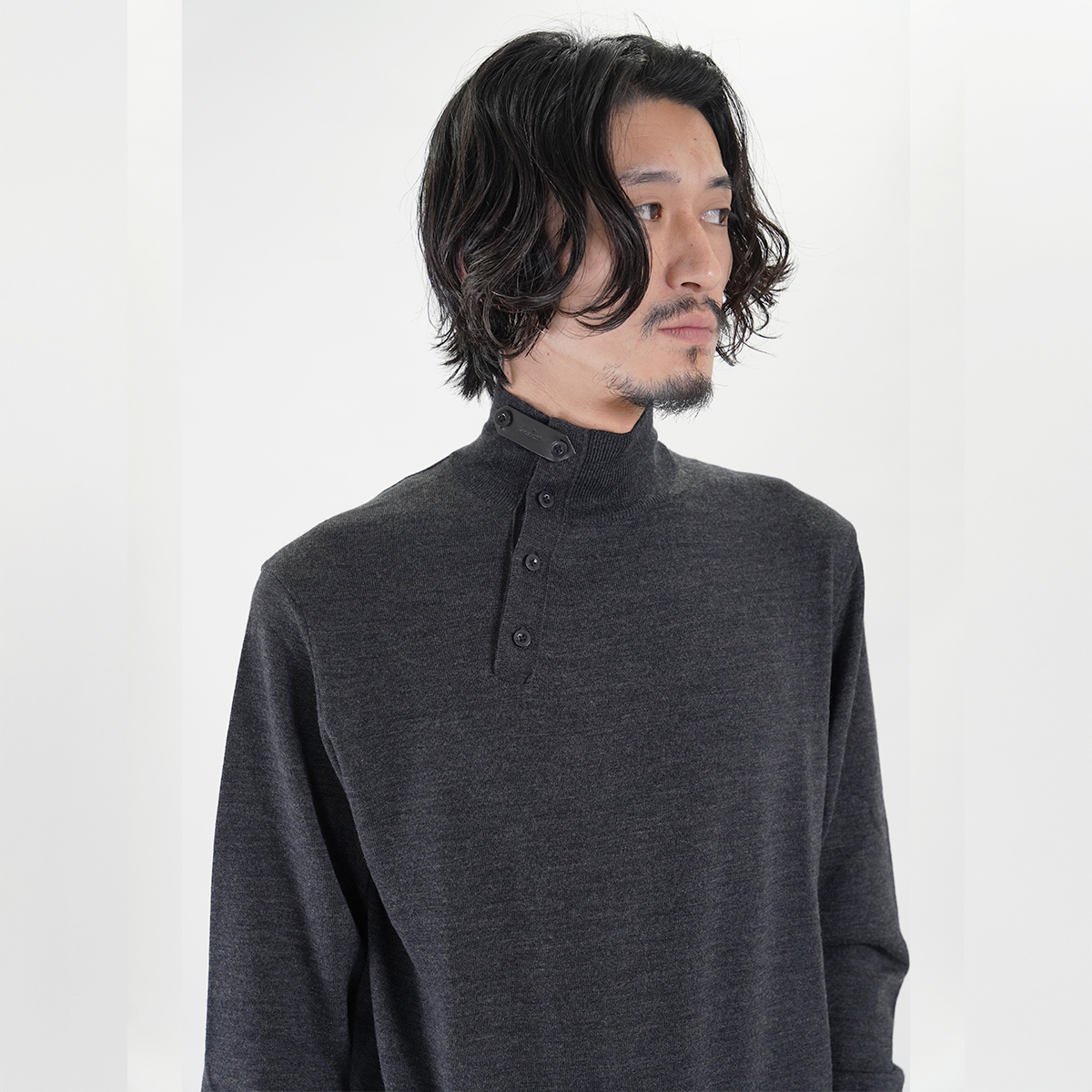 実際に着用してみると、程よい高さの衿が首元を優しく覆い、インナーとしても一枚でも成立する絶妙なデザイン。