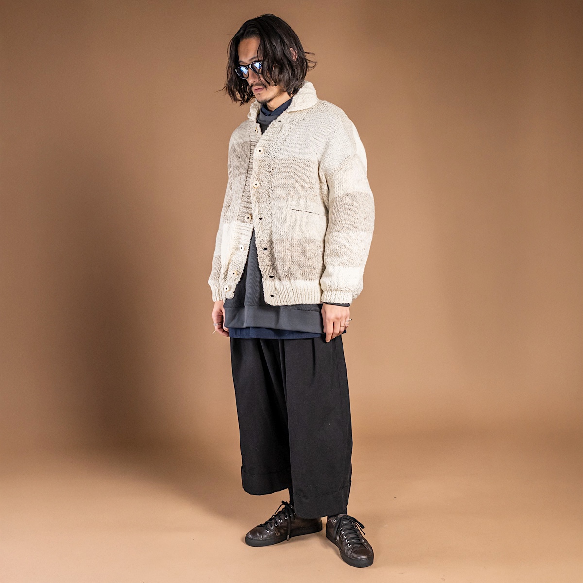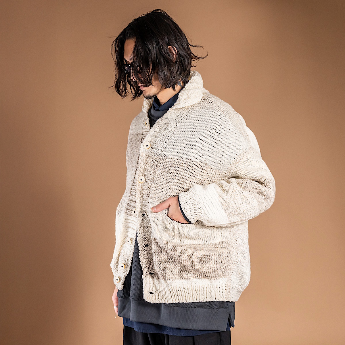 身幅にも余裕を持たせつつ、着丈はカーディガンとしてはやや長めに設定されています。