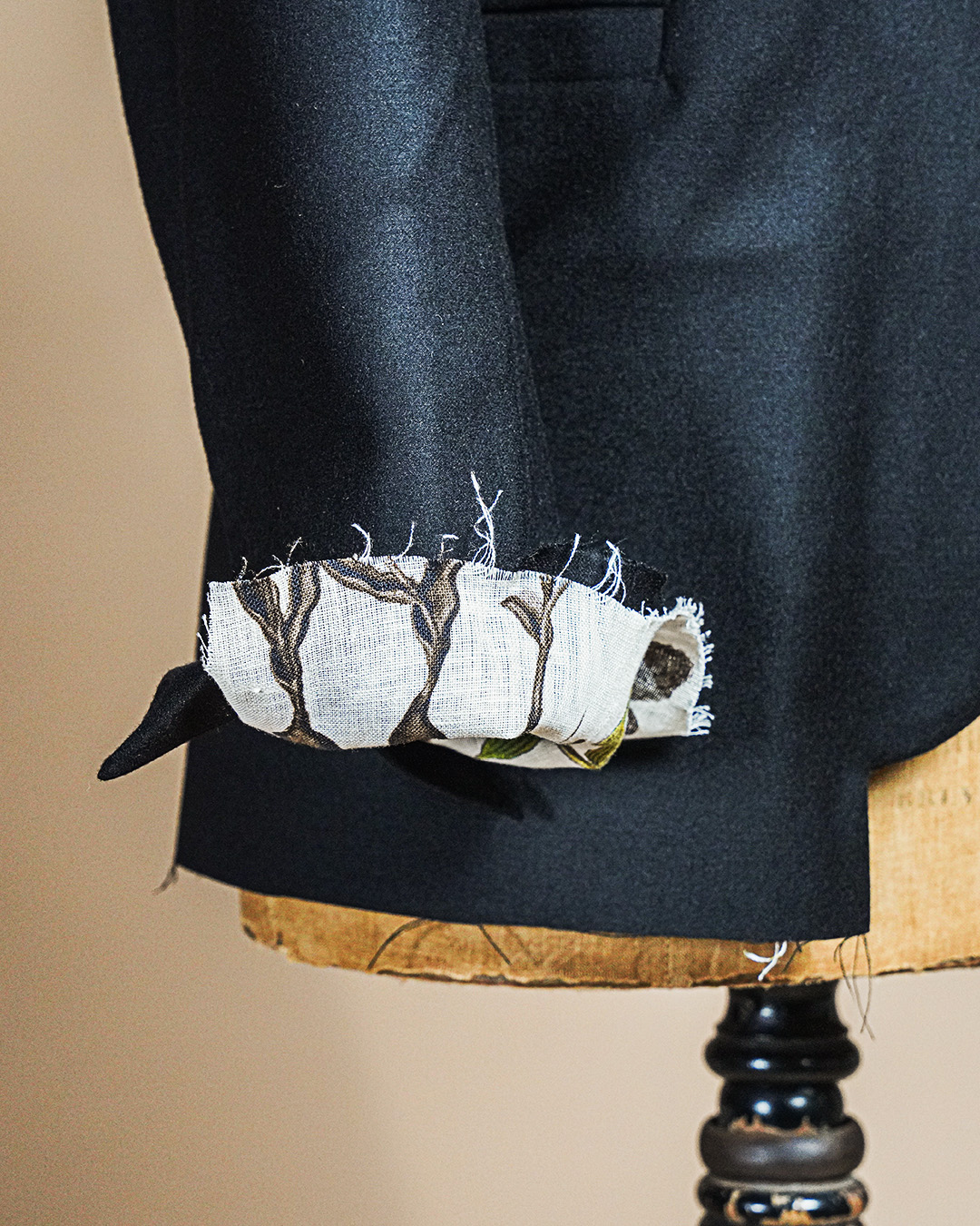 そして、このジャケットの象徴とも言える裏地は袖裏にも使用。