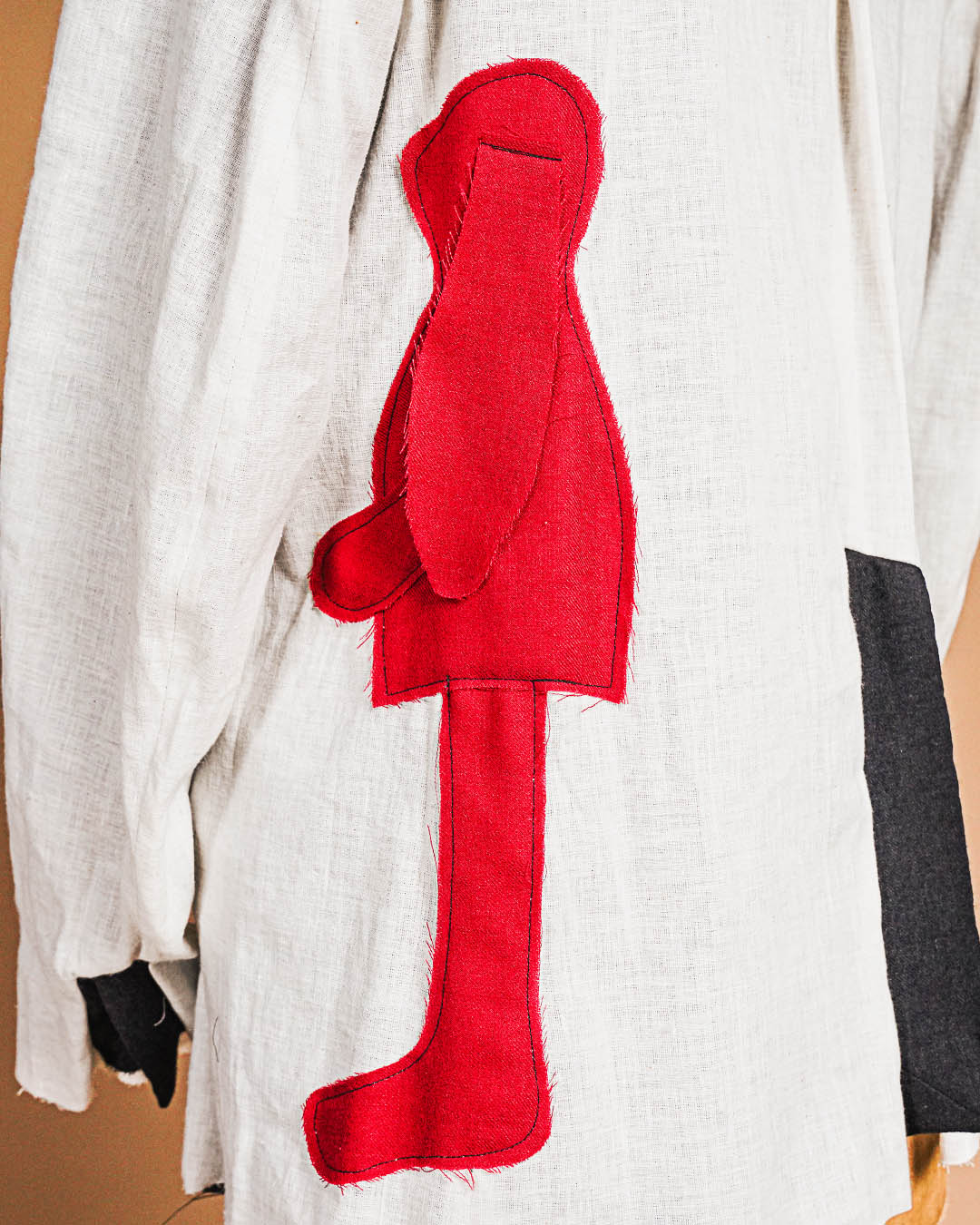 裏地は片側に白いリネンコットン、もう片側には大きなウサギのパッチワーク。