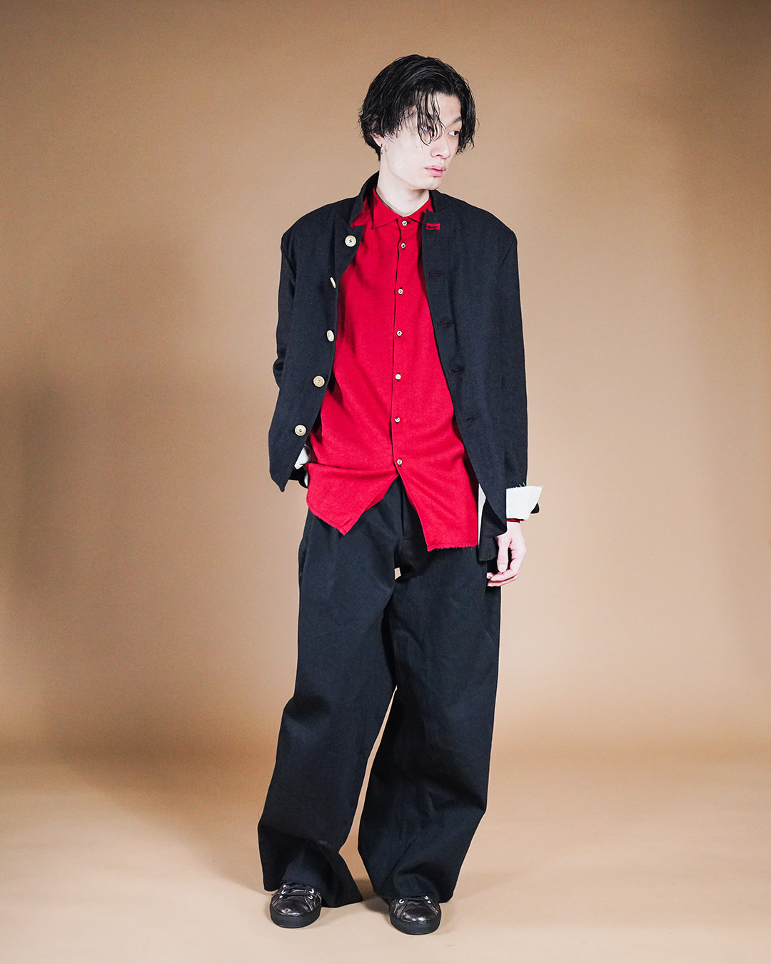 形は極めて使いやすく、合わせるアイテムを選ばない一着。