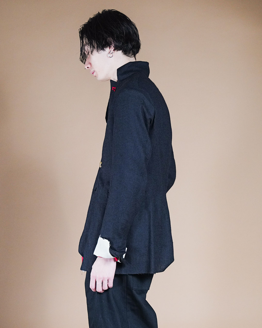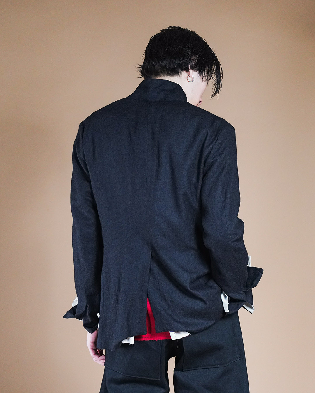 立ち襟で着たときのモードな佇まい。