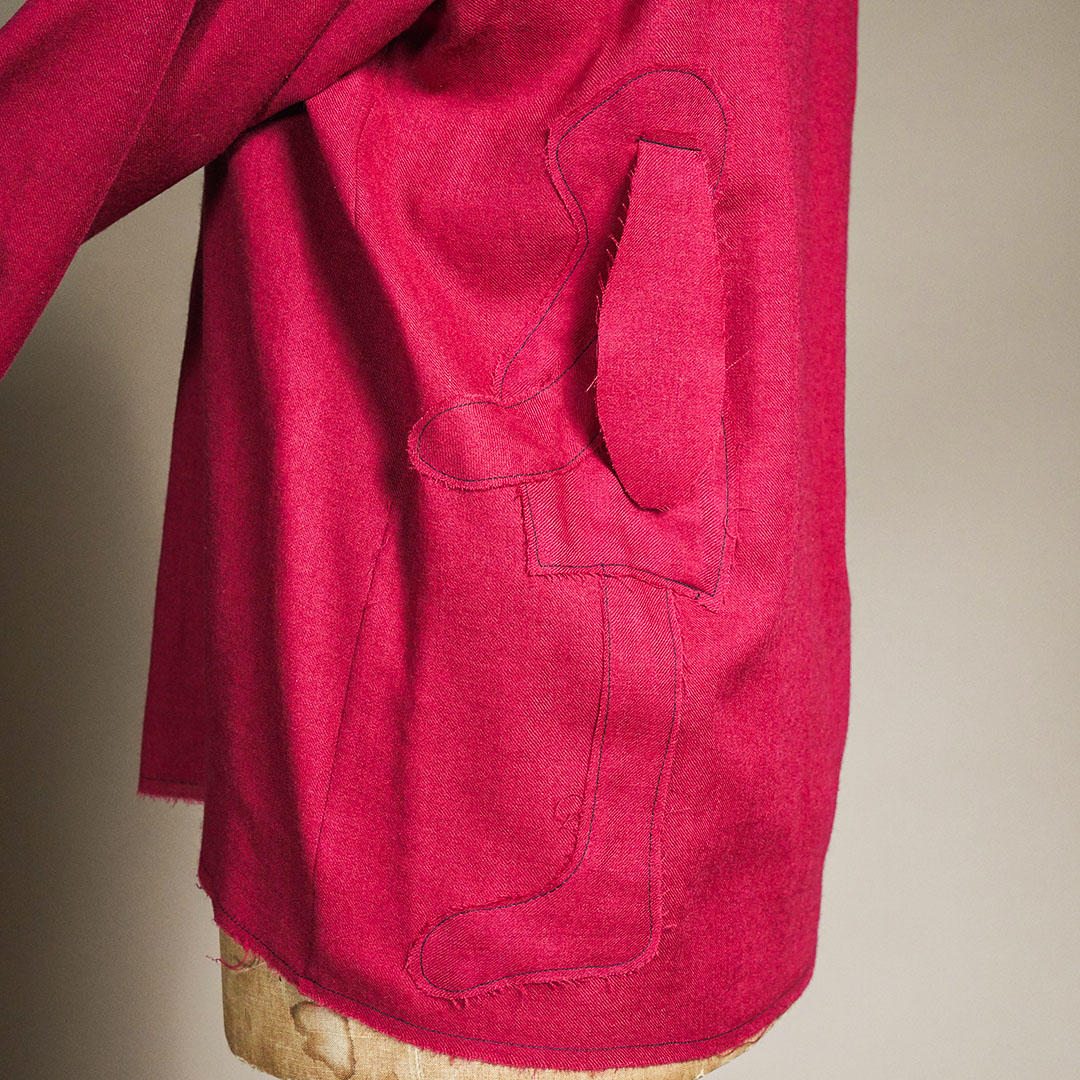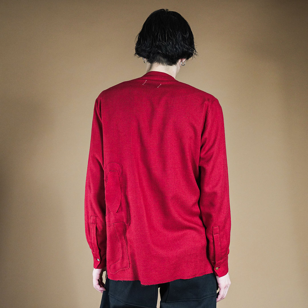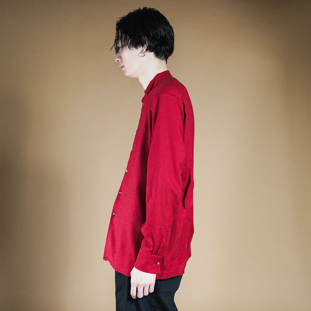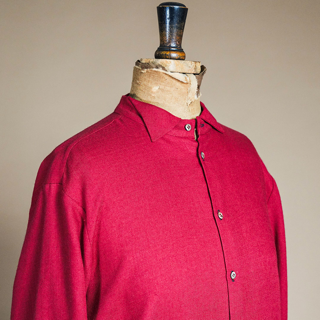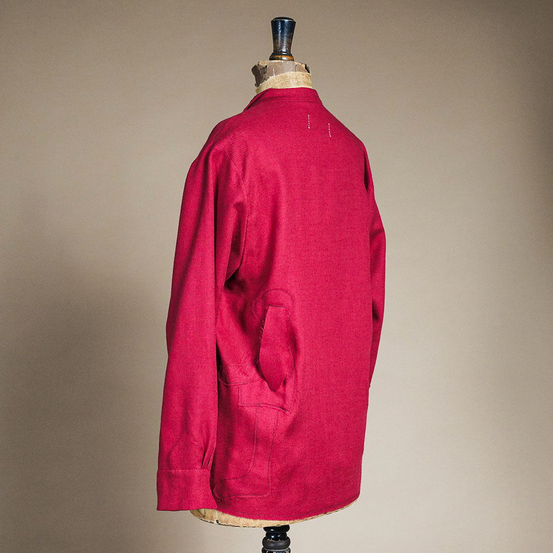 また、ステッチが施された部分には、職人の手仕事ならではの温もりが宿り、一針一針に込められた丁寧な作業が、シャツ全体にマリアらしい表情を感じさせてくれます。