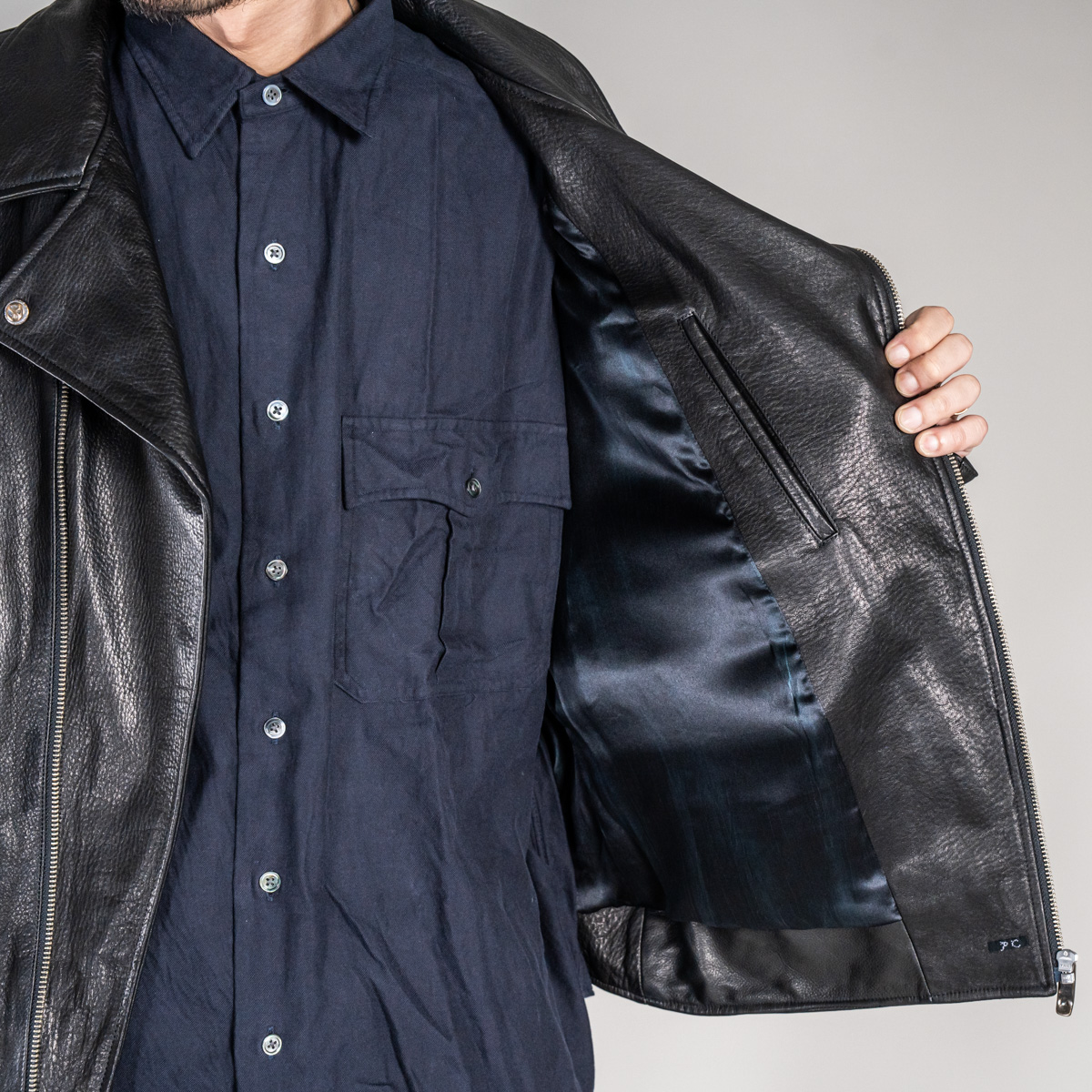 見た目はクラシックなダブルライダースですが、袖を通した瞬間にその印象が変わります。