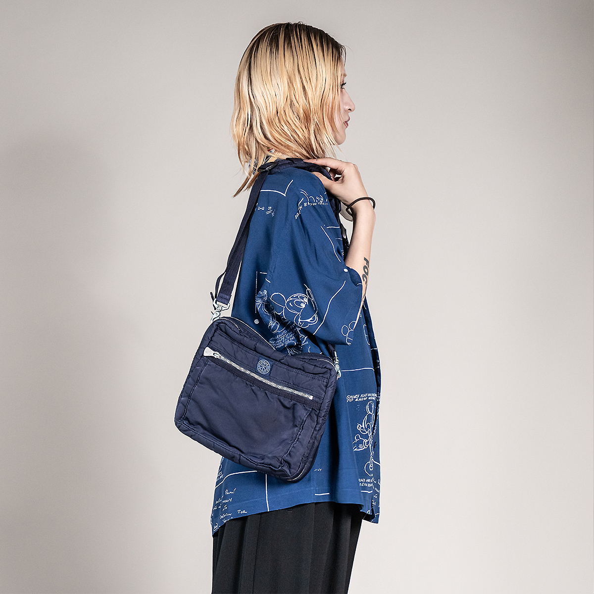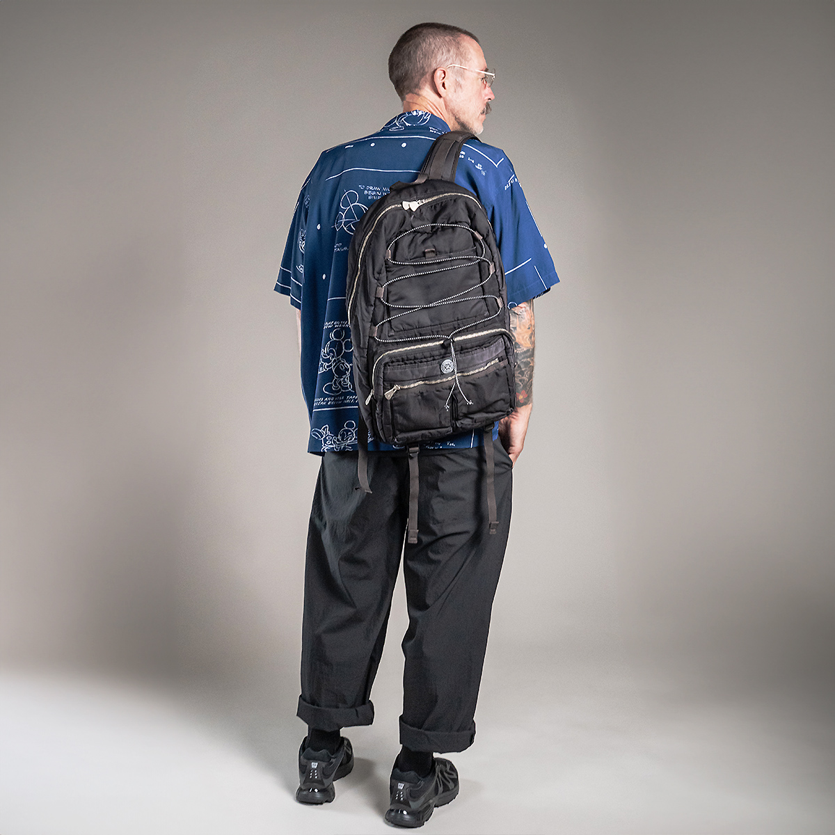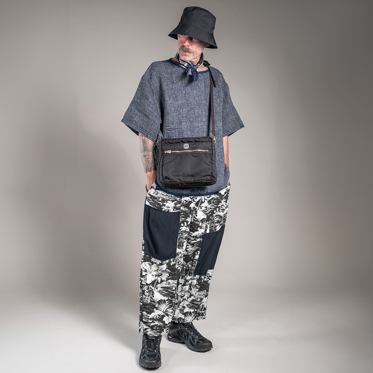 ミリタリーライクな見た目でありながら、柔らかいナイロンの質感と染めによるムラ感が、全体にどこか温もりを与えています。