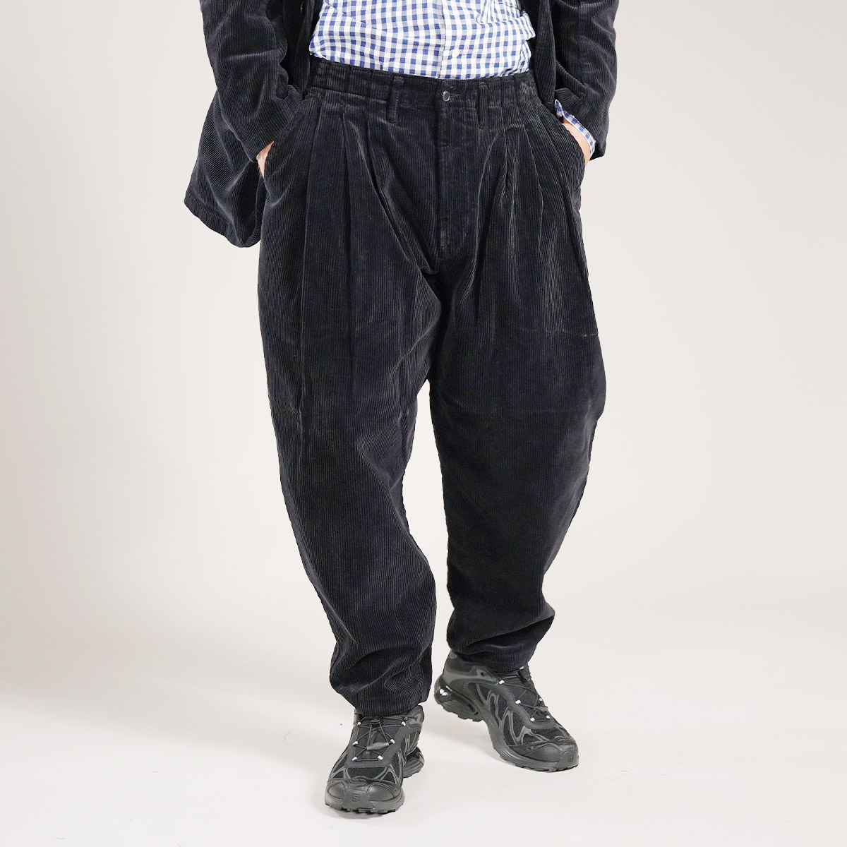 今日はその中から、新しいシルエットで登場した CORDUROY CLEMENCEAU JACKET “WATCH CHAIN” と、完成度の高い定番ボトム CORDUROY SATCHMO PANTS をご紹介します。