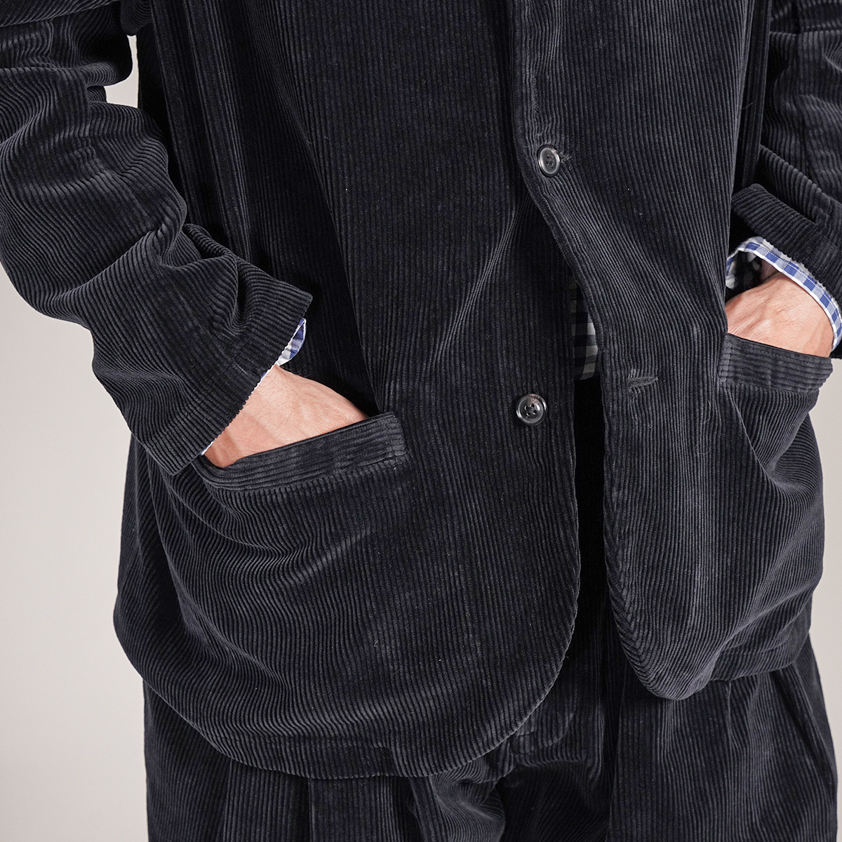 どちらも PCオリジナルの太畝(ふとうね)コーデュロイ を採用。