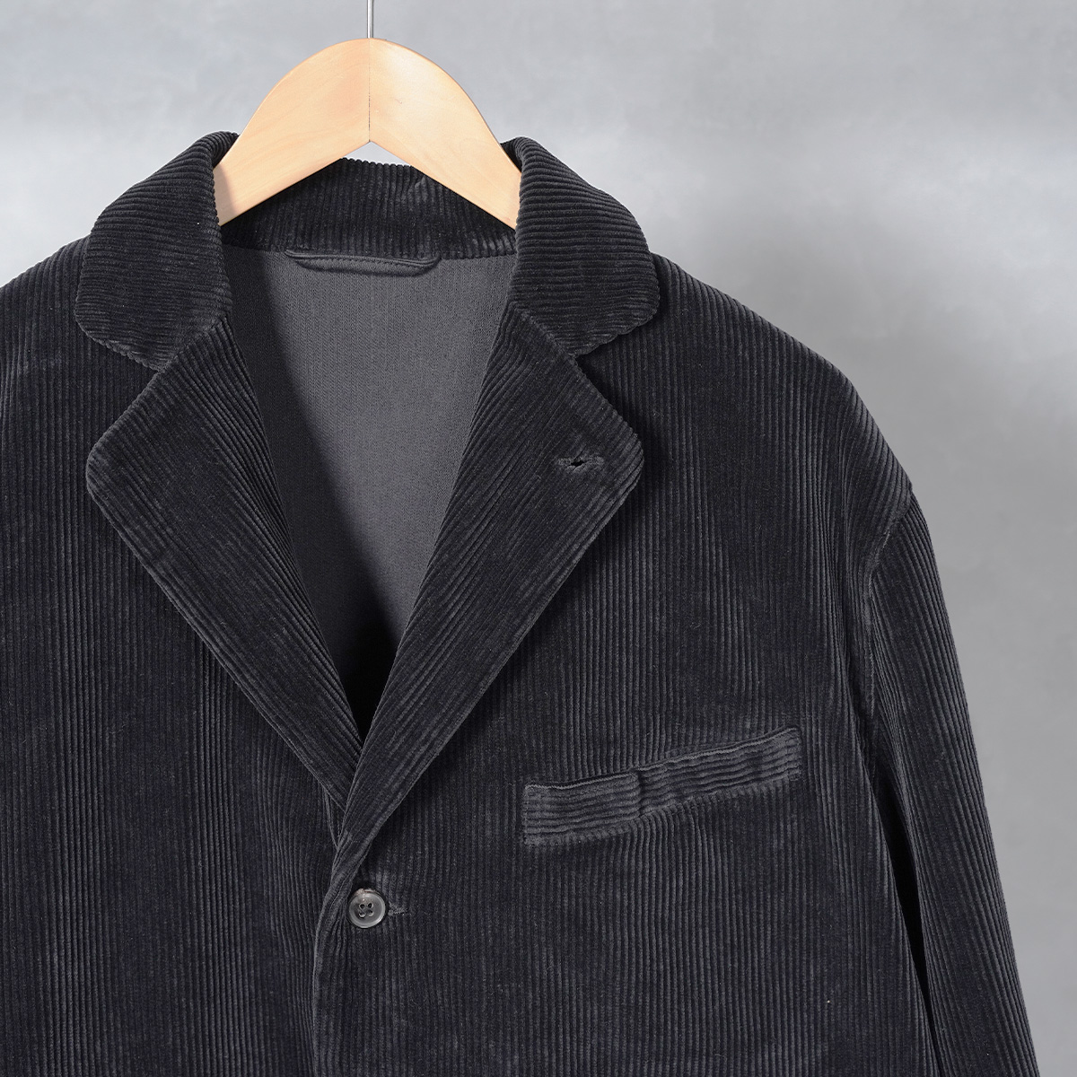 生地はPCオリジナルの太畝。畝は力強いのに、指でつまむとふわりと沈む柔らかさ。