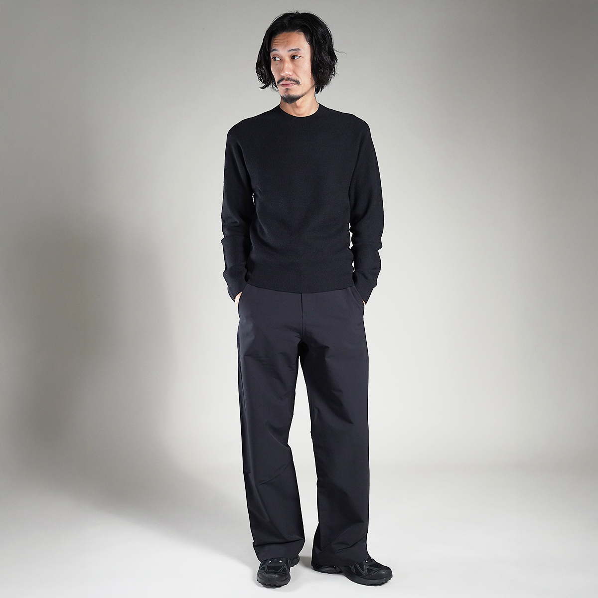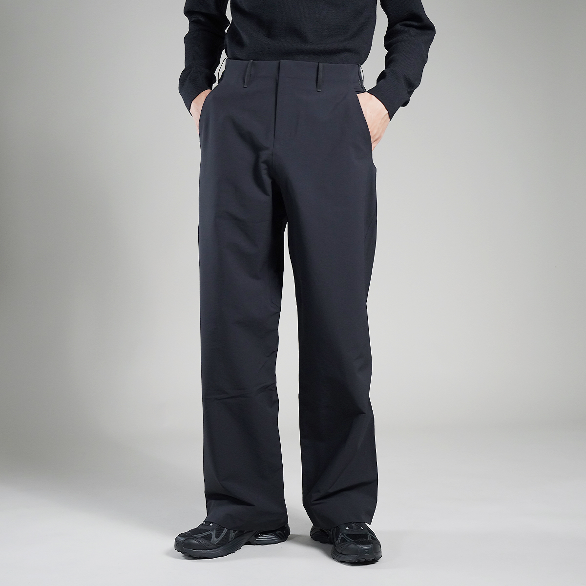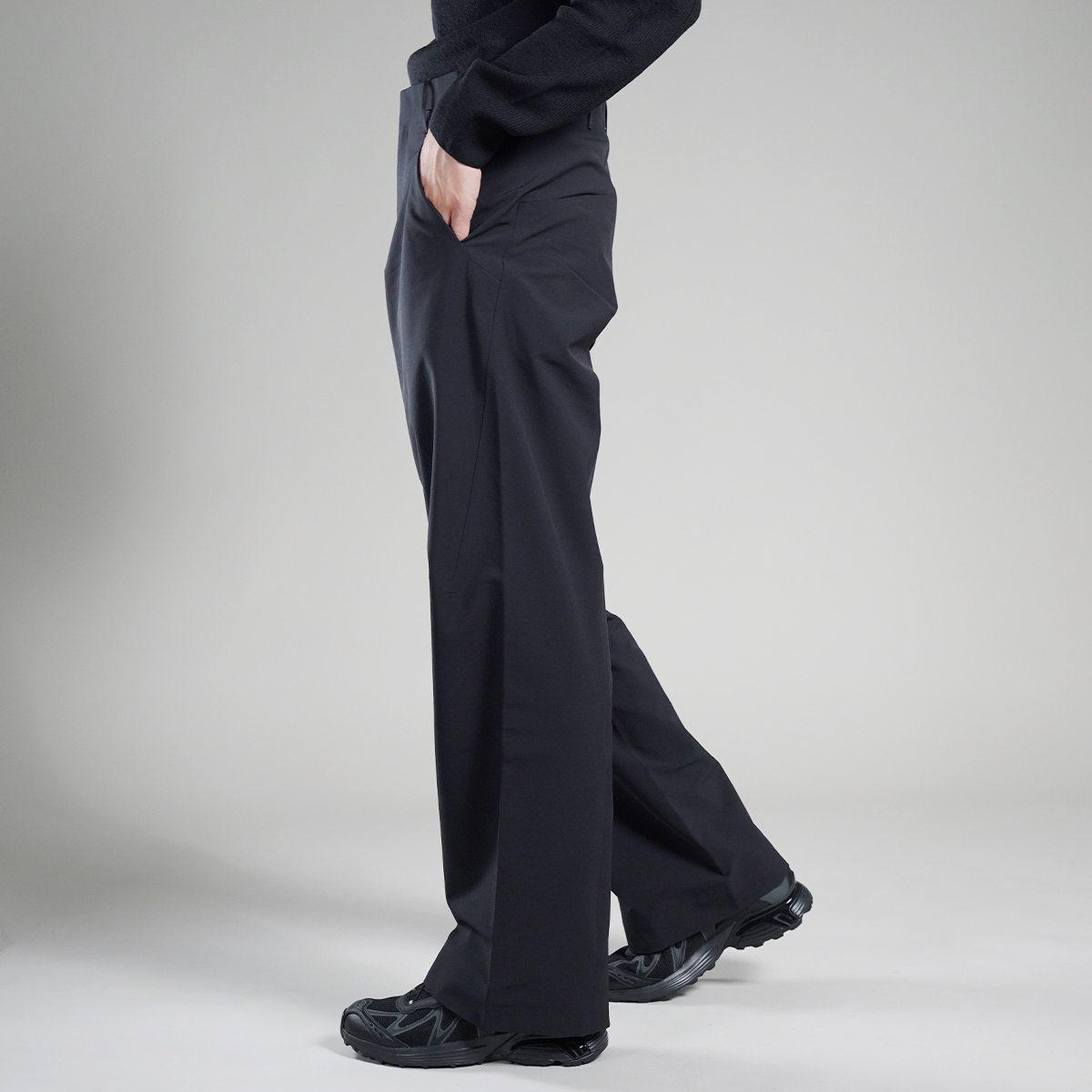 スラックスのような上品さと、VEILANCEの機能性(撥水・ストレッチ)を融合。