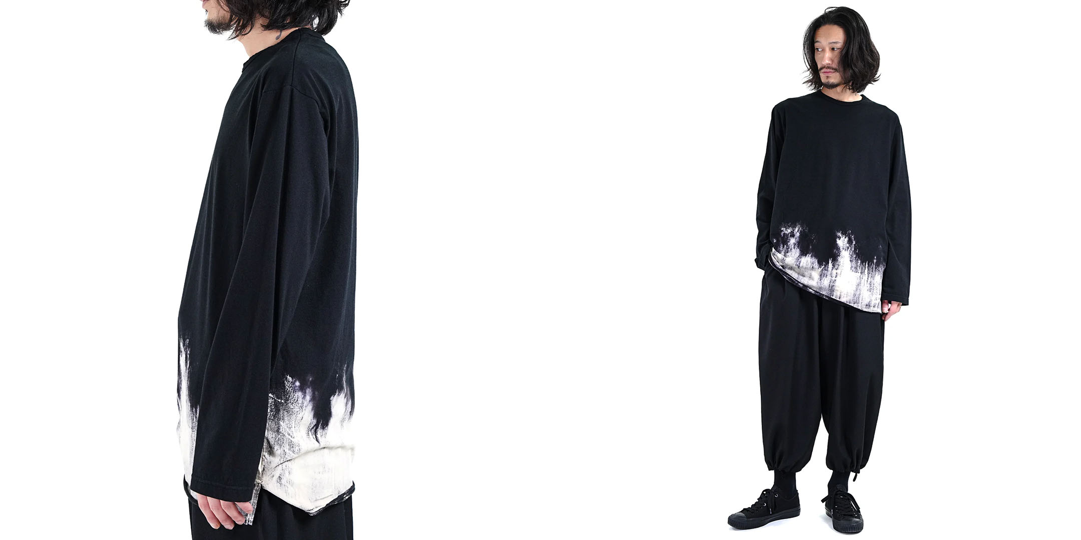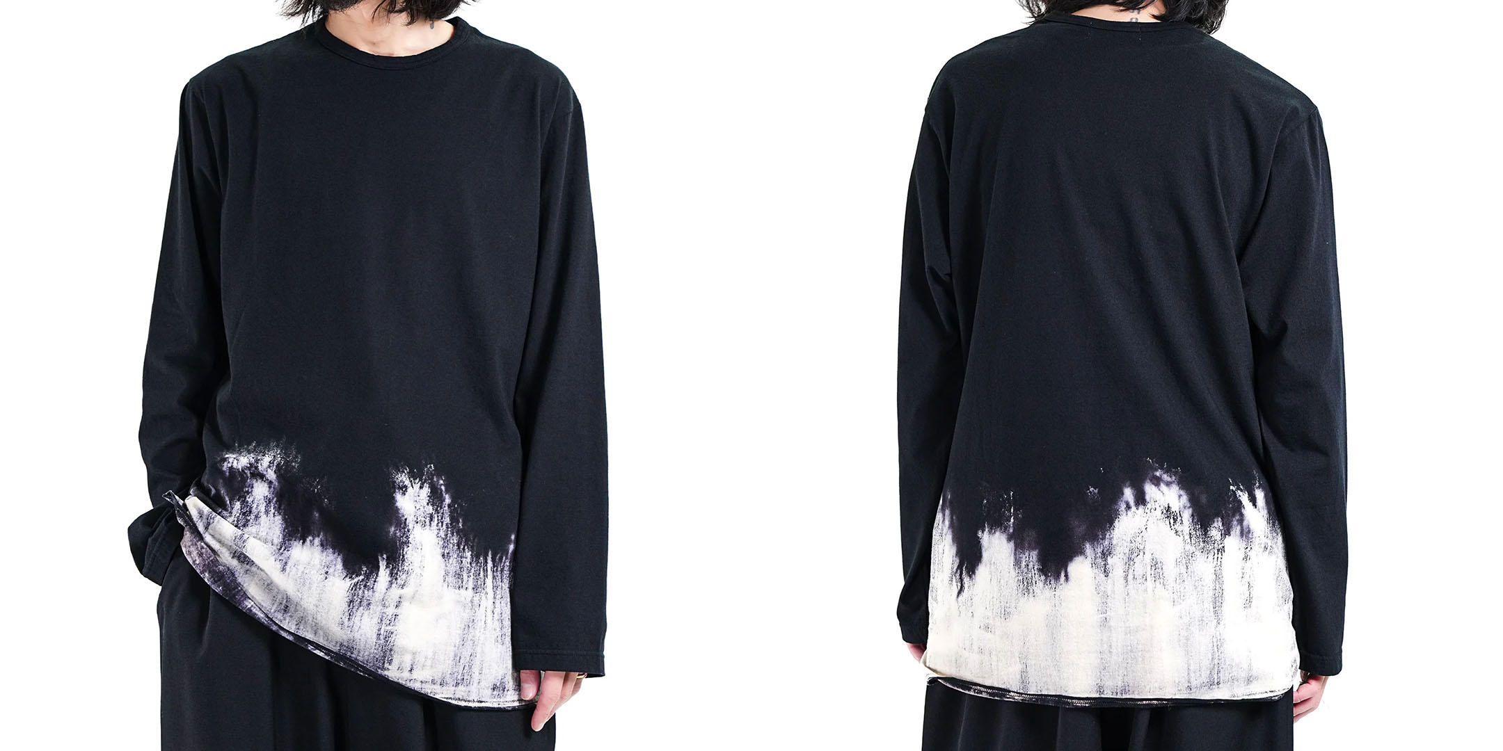 インナーとして裾からプリントを覗かせるレイヤードスタイルでもその真価を発揮します。