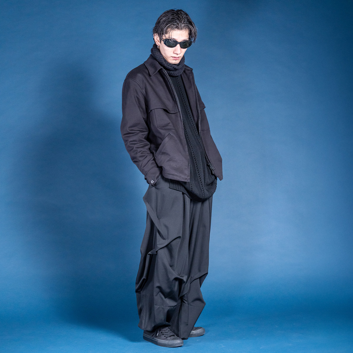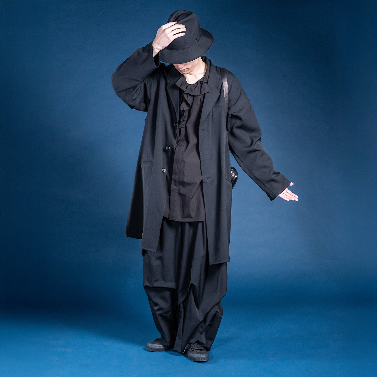 ヨウジスタイル以外にも合わせやすく、このパンツだけでスタイルが成立する完成度は持っておいて間違いなしの一本です。