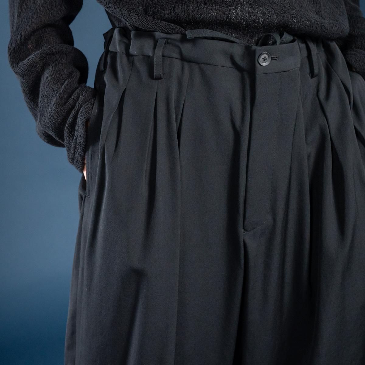 ウエストを一周する12本のタックが生地に美しい落ち感をもたらすベーシックパンツ。