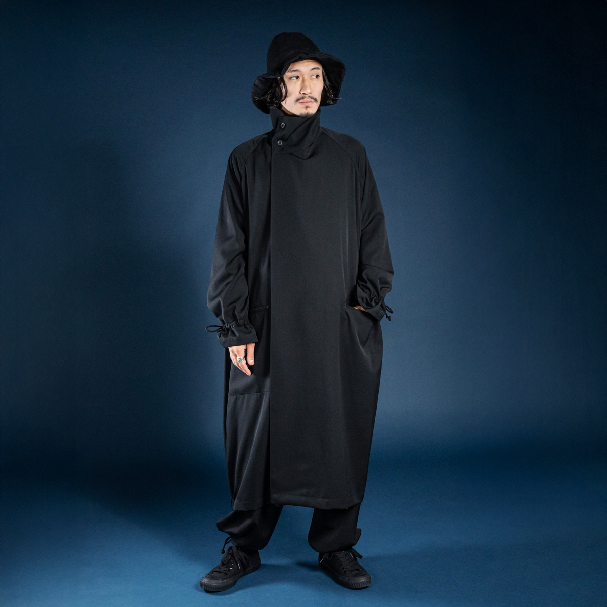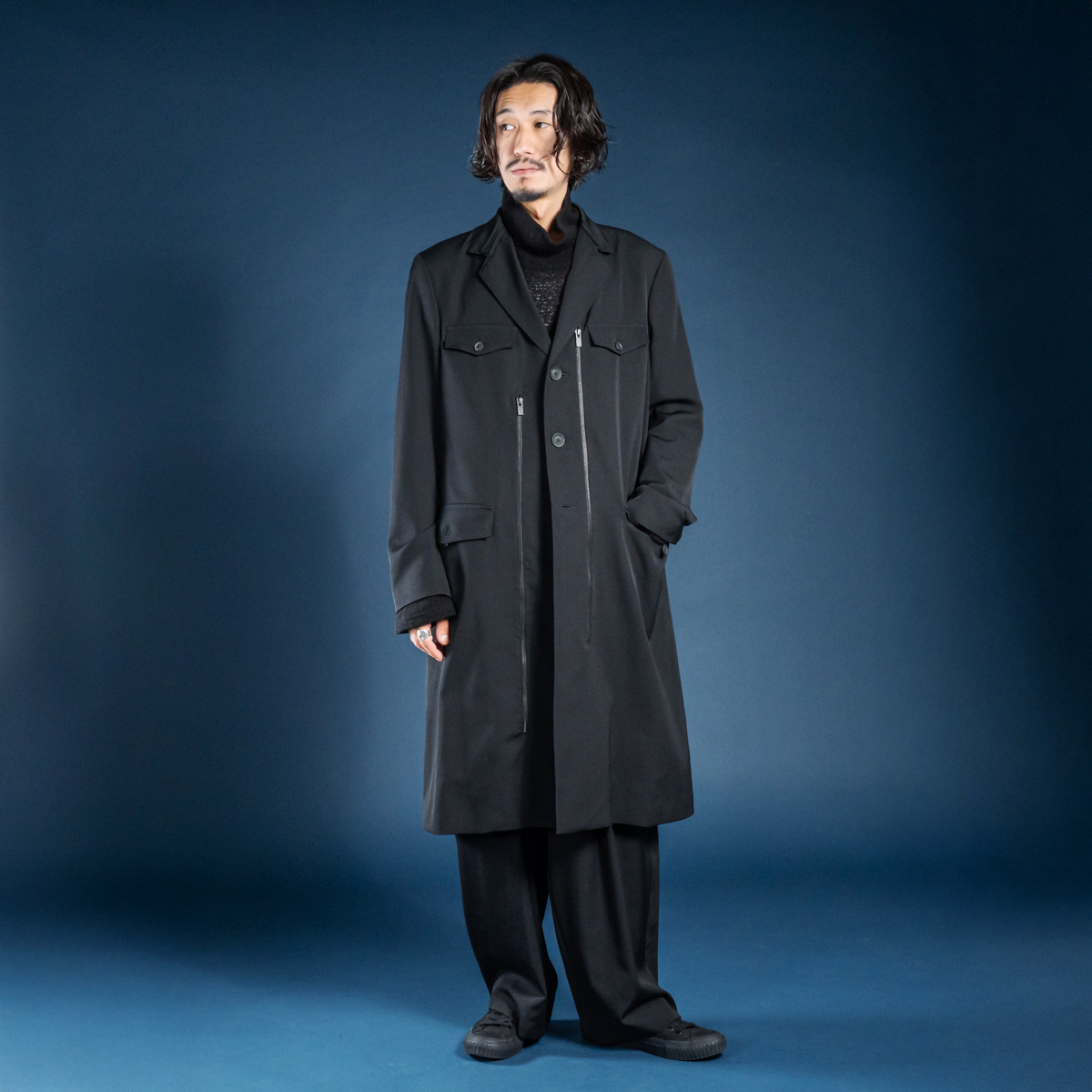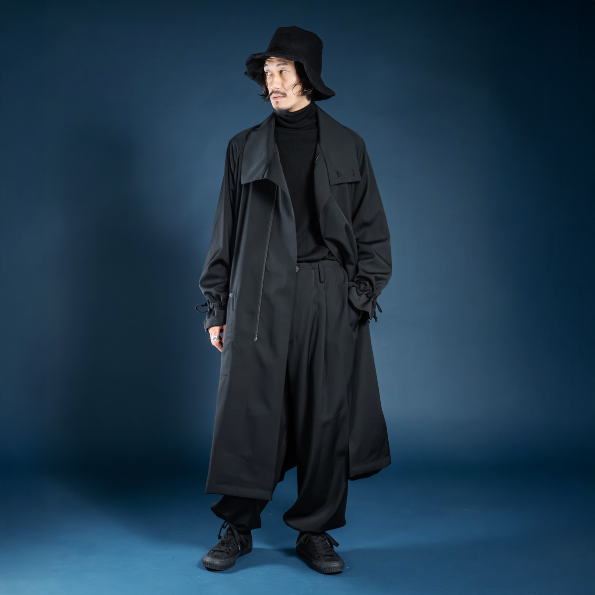 プールオムならではの着丈と生地分量が生み出す迫力のドレープ感。