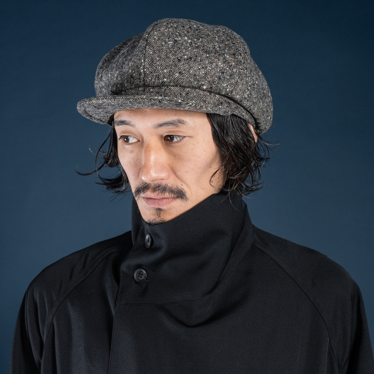 ウール×ナイロンのネップ生地による、グレーがかった表情が特徴のキャスケット。
