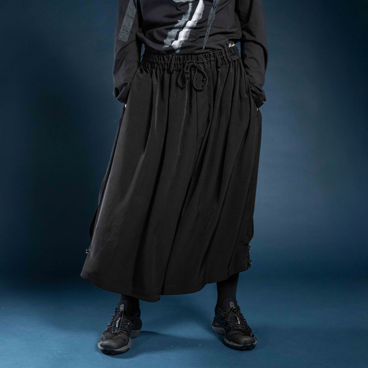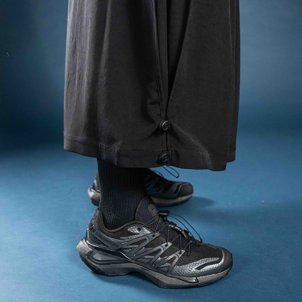 裾にはボタンが付いていて、サイドの生地が開く仕組みになっており、